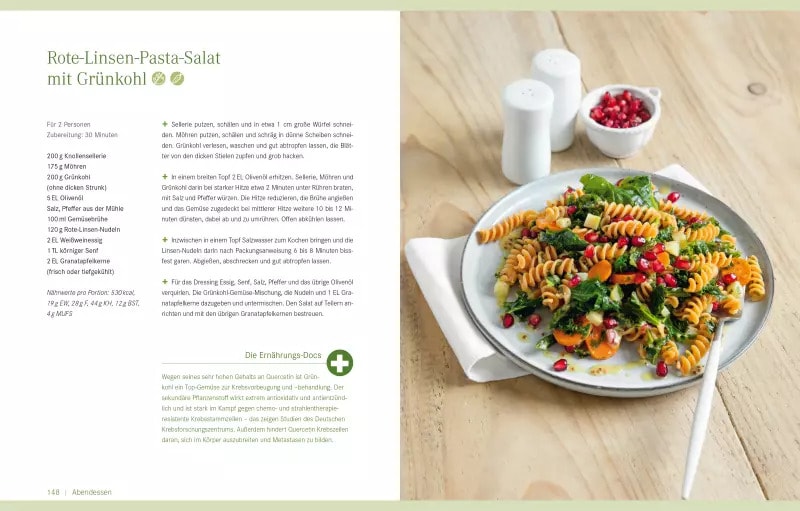 Mit welchen Lebensmitteln kann man Krebs vorbeugen? Sind Selleriesaft, Kurkuma und Himbeeren wirklich Wunderwaffen? Welche Rolle spielen gesunde Fette, Proteine und Pflanzenstoffe? Inwieweit helfen Fasten und Diäten? Auf diese und viele andere Fragen geben die E-Docs in ihrem neuen Buch verlässliche Antworten und verraten neben vielen wertvollen Tipps mehr als 70 alltagstaugliche Rezepte, die allen gut schmecken - nur nicht dem Krebs!