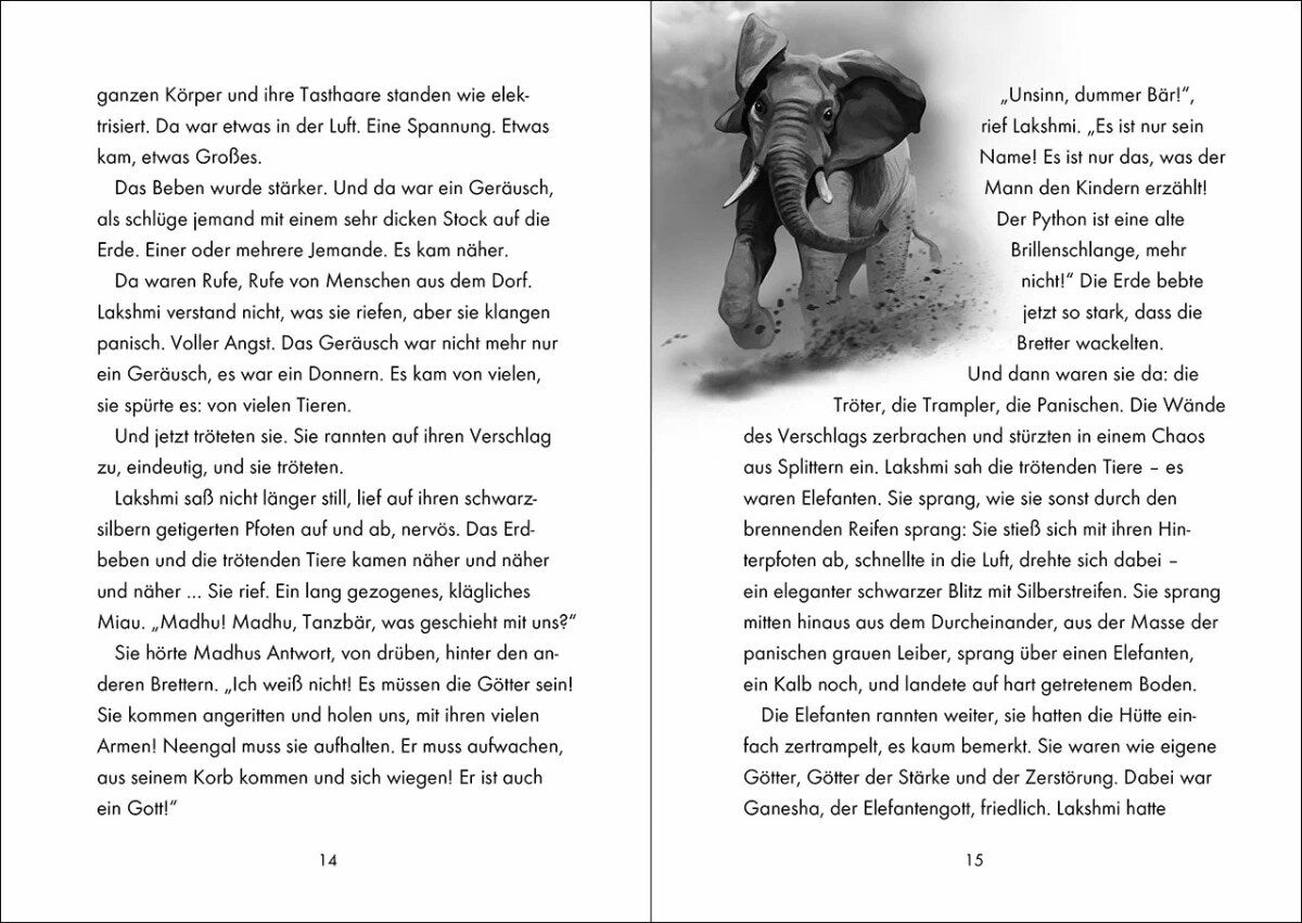 Die schwarze Tigerin Lakshmi befreit sich aus der Gefangenschaft und flieht in das geheimnisvolle grüne Dickicht. Das Leben in Freiheit und die Gesetze des Dschungels muss Lakshmi aber erst lernen und tapst dabei in einige Fettnäpfchen. Gefahr geht nicht nur von dem gefürchteten König des Dschungels aus, der sein Revier verteidigt. Auch die Menschen kommen der Tigerin gefährlich nahe ...