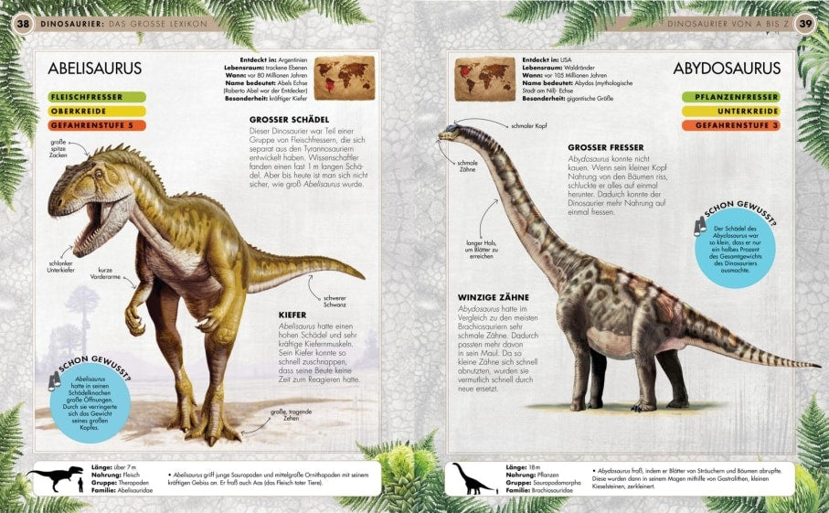 Wer waren diese Giganten, die vor Urzeiten unseren Planeten bewohnten? Wie lebten sie? Wie kommunizierten sie? Lebten sie in Herden oder allein? Was frassen sie? Wie war ihr Körperbau und woher wissen wir das alles? Nach einer allgemeinen Einführung werden hier über 160 Dinosaurier-Arten vorgestellt: von Abelisaurus bis Yinlang. Und natürlich fehlen auch die bekannten Vertreter wie Diplodocus, Tyrannosaurus und Brachiosaurus nicht. Mit zahlreichen beeindruckend-detaillierten und modernen Illustrationen sowie den neuesten Forschungsergebnissen.