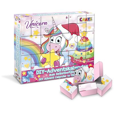 Selbermachen ist IN. Mit etwas Geschick und Fantasie begeistert der DIY-Adventskalender Unicorn große und kleine Einhorn-Fans. 24 Kartonboxen zum Basteln und Befüllen mit individuellen Überraschungen werden eingefasst von einem Adventskalenderrahmen, alles im zauberhaften und angesagten Unicorn-Design. Damit ist das Schenken ein toller Spaß und die Wartezeit auf Weihnachten verfliegt wie im Nu!