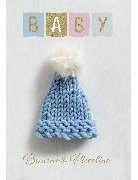 Doppelkarte. Biglietto nascita azzuro c/foil oro