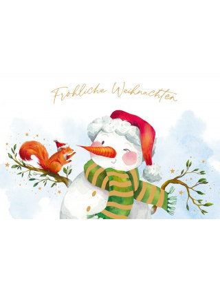 Doppelkarte. Green Karma X-MAS - Der Schneemann und das Eichhörnchen