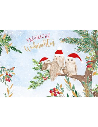 Doppelkarte. Green Karma X-MAS - Eulenfamilie