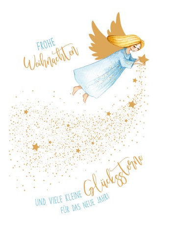 Doppelkarte. Green Karma X-MAS - Schutzengel verteilt Glückssterne