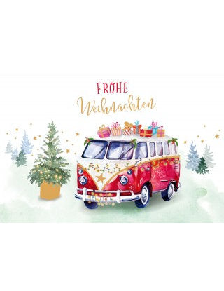 Doppelkarte. Green Karma X-MAS - Weihnachtlicher Bulli