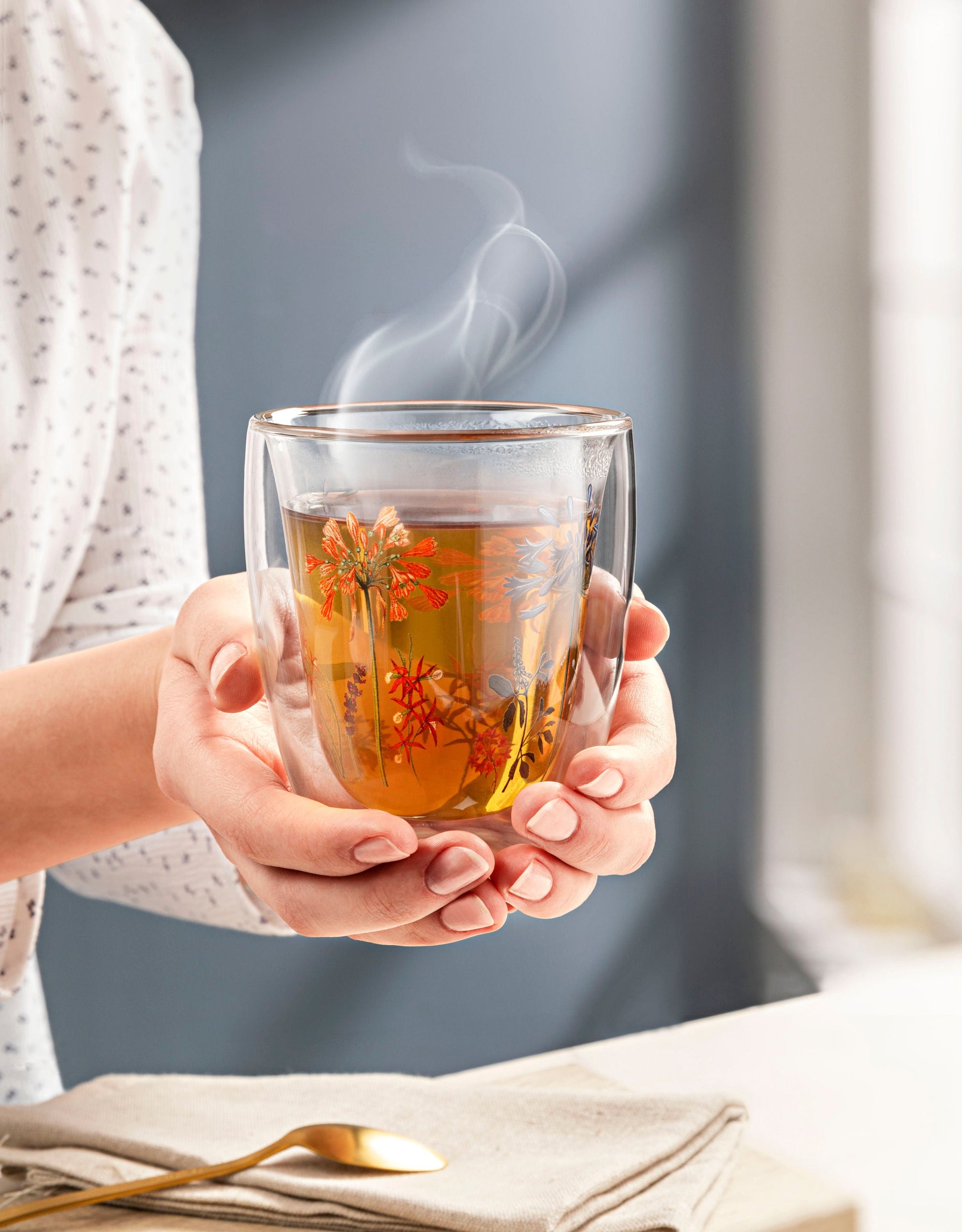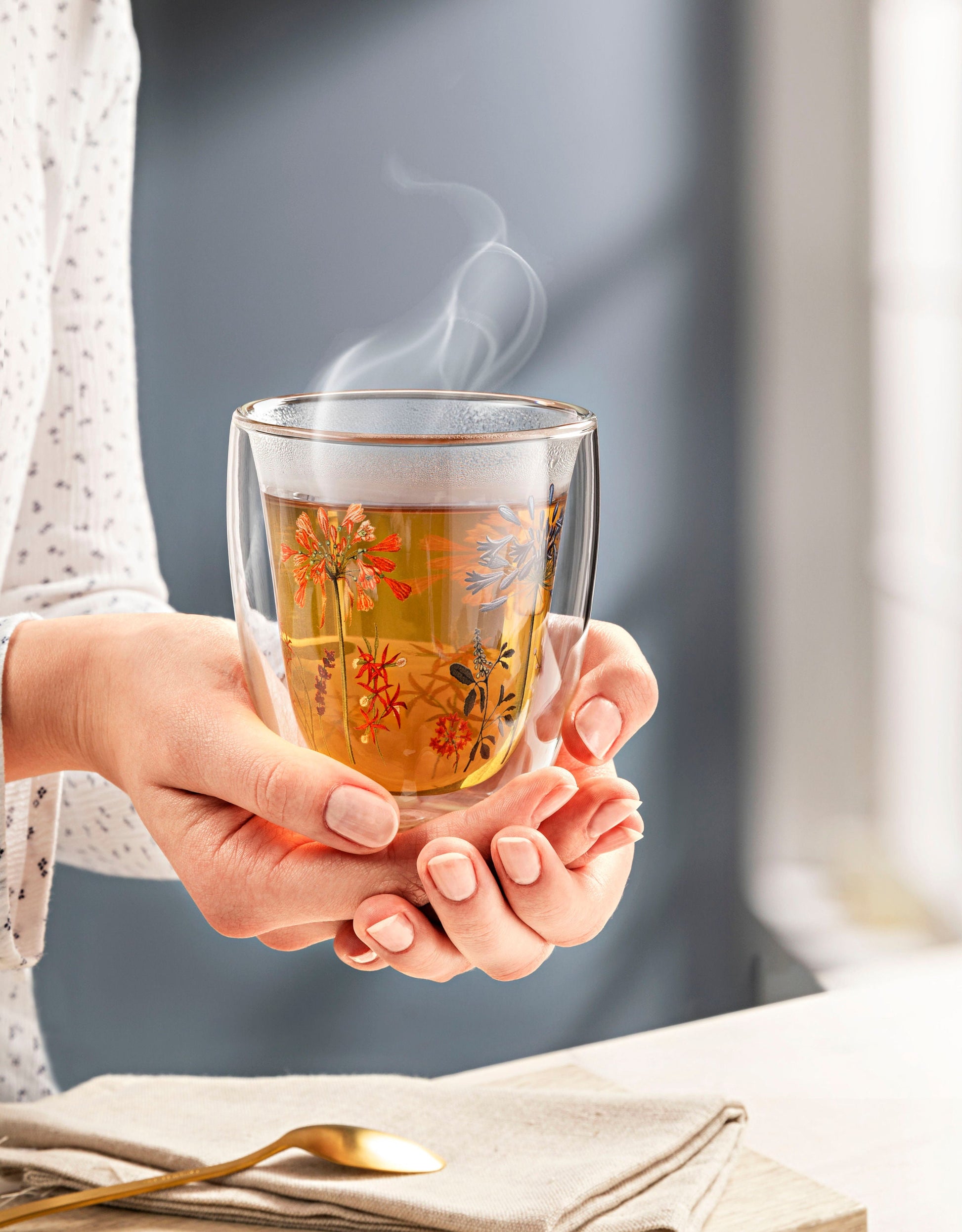 Gleichzeitig sind diese Thermogläser unkompliziert und alltagstauglich. Da das bildschöne Blütendekor auf die innere Glaswand gedruckt ist, können die Gläser problemlos in der Spülmaschine gereinigt und in der Mikrowelle erhitzt werden.
