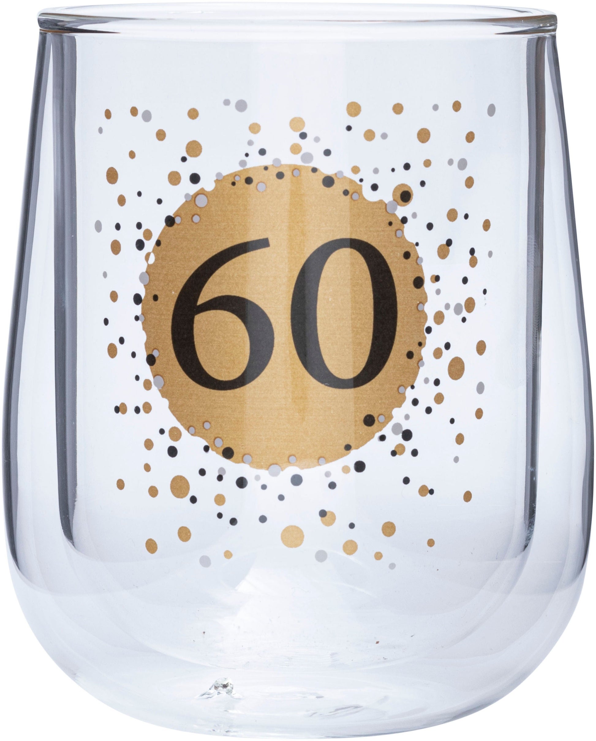Extra groß und festtagstauglich: das doppelwandige Glas zum 60. Geburtstag