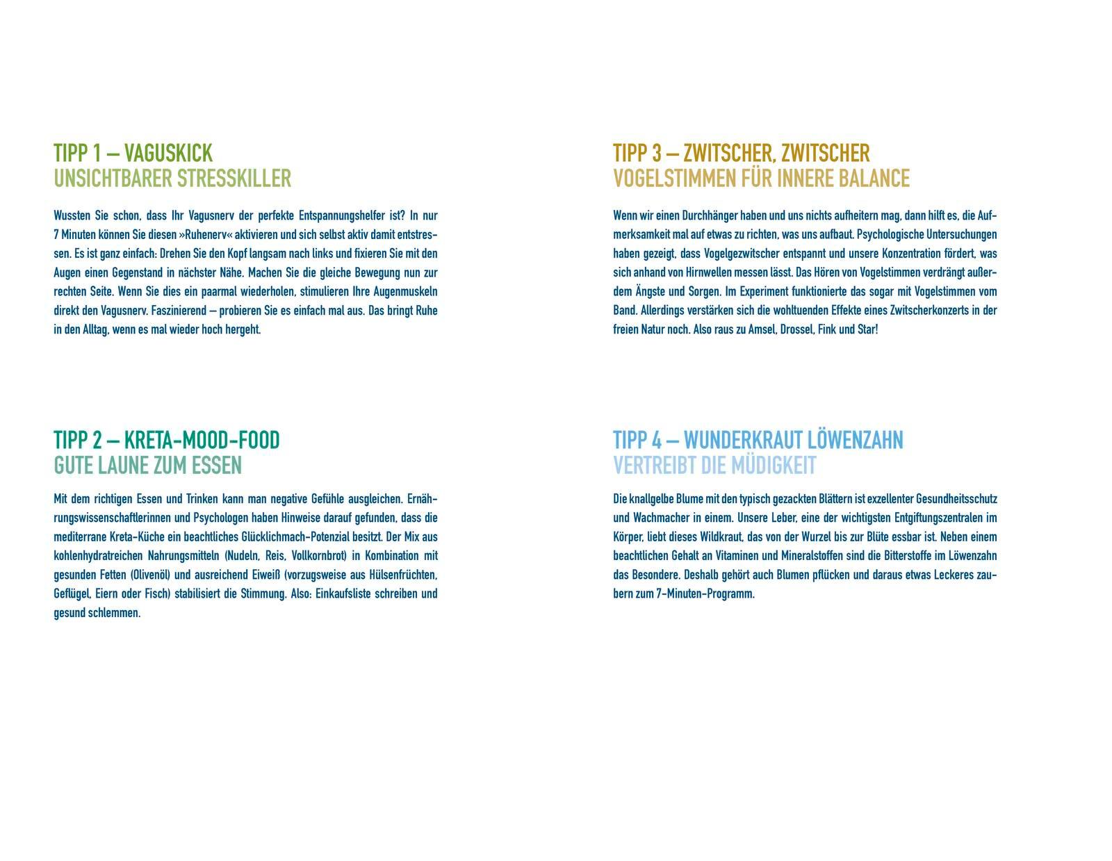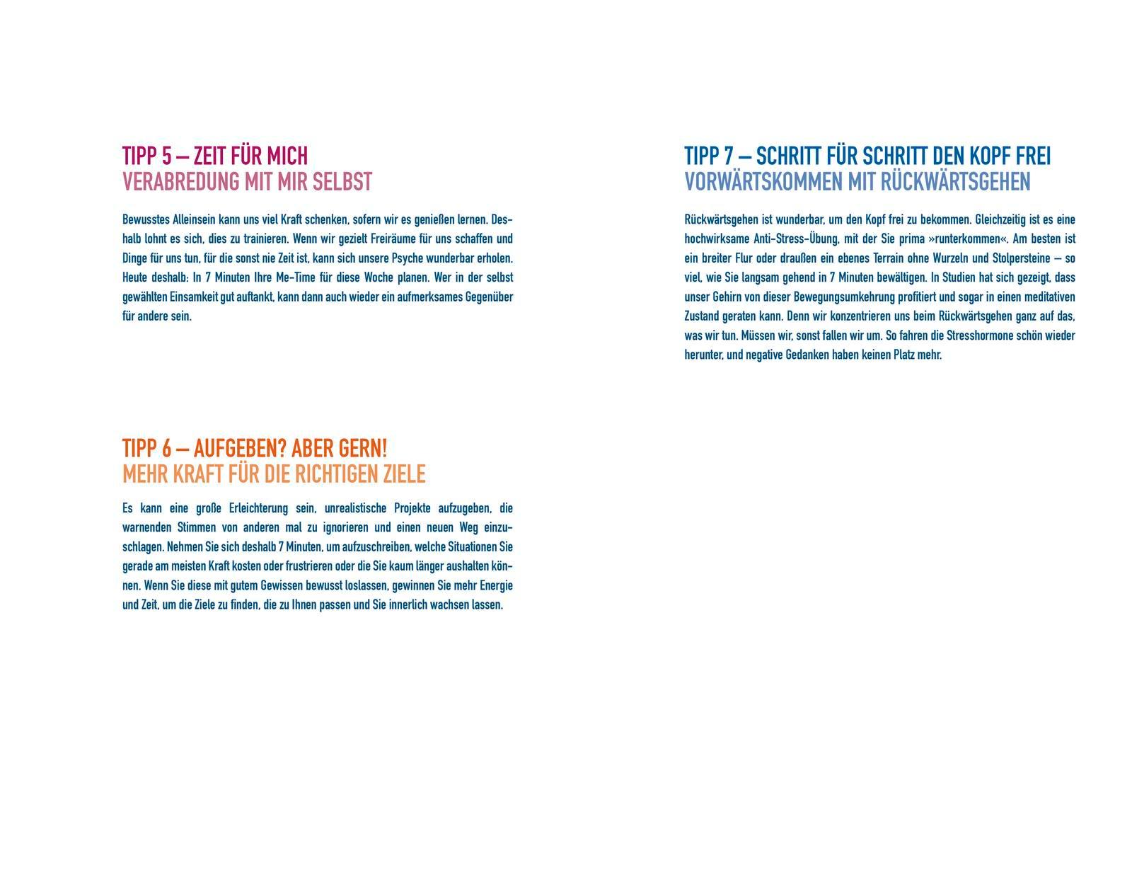 - Schenken Sie sich jeden Tag 7 Minuten und verbessern Sie in 7 Wochen nachhaltig Ihr seelisches Wohlbefinden.