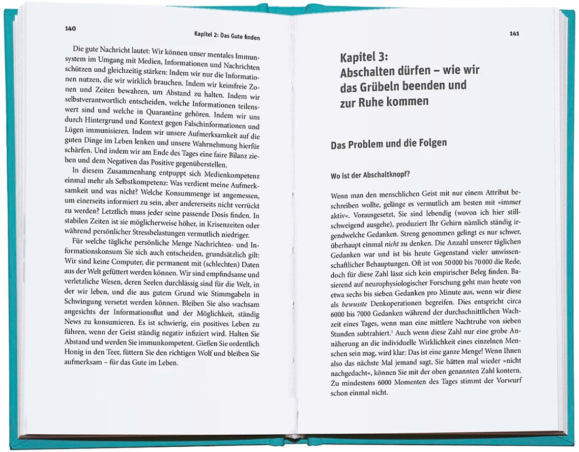 »Zum Schutz unserer Psyche haben wir ein mentales Immunsystem. Es rückt die Welt in unserem Kopf gerade, schützt uns vor Negativem, verkleinert Ängste, macht Mut zum Handeln und schafft Freiräume für Lachen und Fröhlichkeit. Aber es ist aktuell stark beansprucht. Daher braucht es Schutz und Pflege, sowie