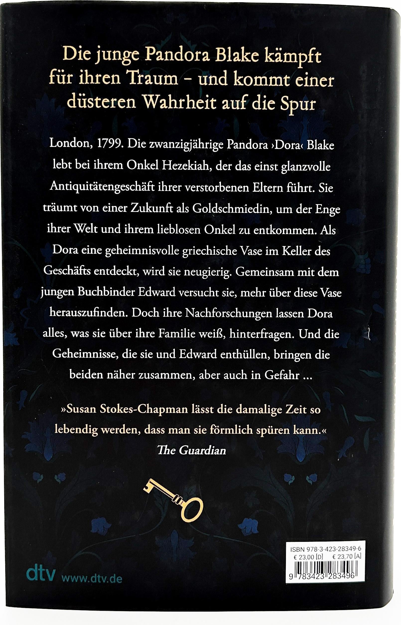 >Dora< Blake lebt bei ihrem Onkel Hezekiah, der das einst glanzvolle Antiquitätengeschäft ihrer verstorbenen Eltern führt. Sie träumt von einer Zukunft als Goldschmiedin, um der Enge ihrer Welt und ihrem lieblosen Onkel zu entkommen. Als Dora entdeckt, dass Hezekiah eine geheimnisvolle griechische Vase im Keller des Geschäfts versteckt, wird sie neugierig. Sie versucht, mehr über diese Vase herauszufinden und bittet den jungen Buchbinder und Hobby-Archäologen Edward um Hilfe. Doch ihre gemeinsamen Nachforschungen lassen Dora alles, was sie über ihre Familie weiß, hinterfragen. Und die Geheimnisse, die Dora und Edward enthüllen, bringen die beiden zunehmend in Gefahr ...