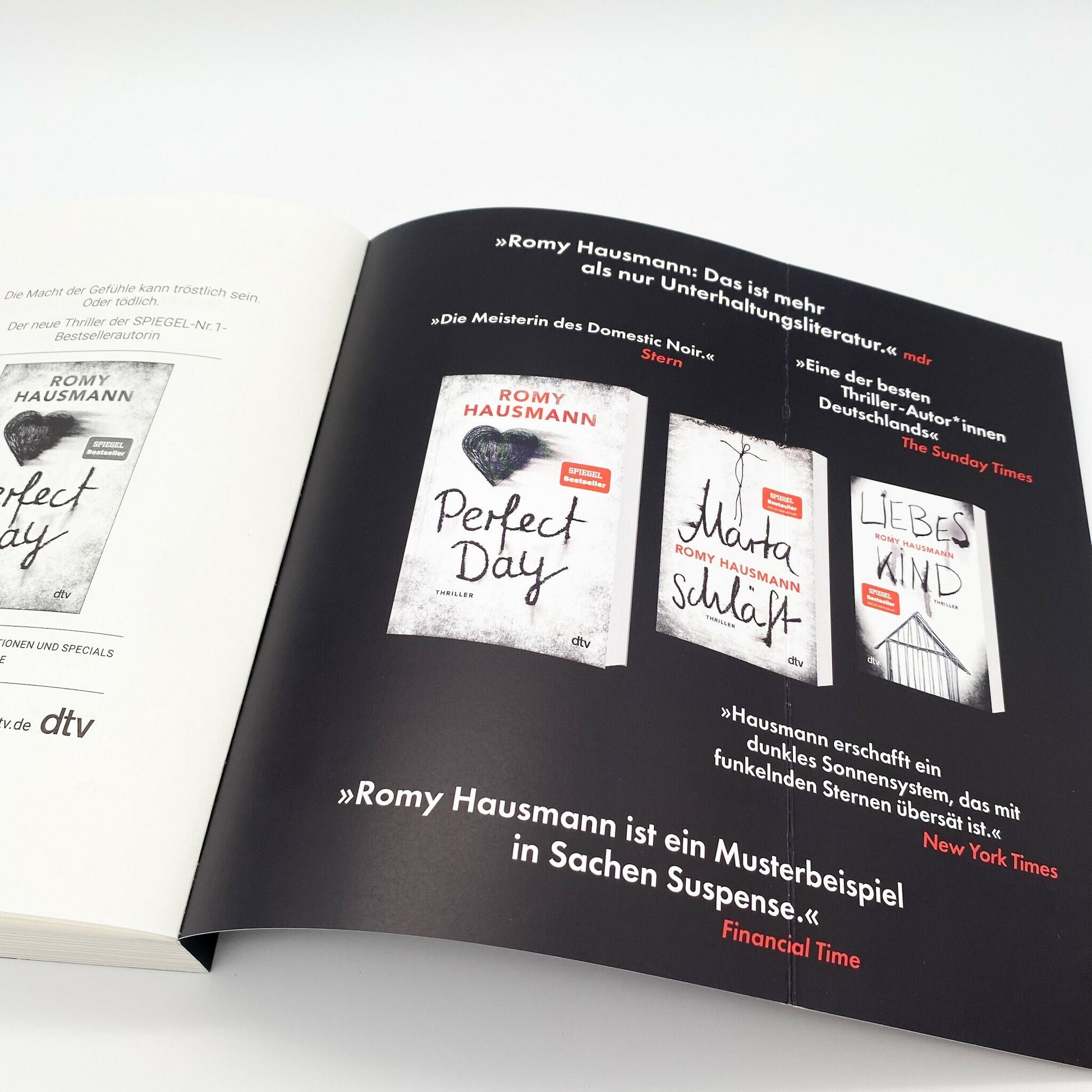 Romy Hausmann, Jahrgang 1981, hat sich 2019 mit ihrem Thrillerdebüt ¿Liebes Kind¿ sogleich an die Spitze der deutschen Spannungsliteratur geschrieben: ¿Liebes Kind¿ landete auf Platz 1 der SPIEGEL-Bestsellerliste, mit ¿Marta schläft¿ folgte 2020 ihr zweiter Bestseller. Übersetzungen ihrer Bücher erscheinen in 26 Ländern, die Filmrechte wurden hochkarätig verkauft. Romy Hausmann wohnt mit ihrer Familie in einem abgeschiedenen Waldhaus in der Nähe von Stuttgart. Auch ihr dritter Thriller ¿Perfect Day¿ landete sofort nach Erscheinen 2022 auf Platz 2 der SPIEGEL-Bestsellerliste. Weitere Informationen unter [...]