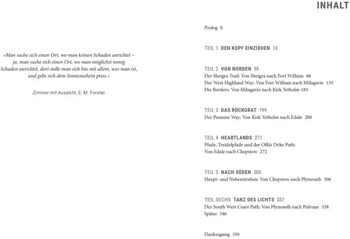Die Geschichte von Raynor und Moth geht weiter: Nachdem sie Haus und Hof verloren hatten und den über 1000 Kilometer langen South West Coast Path gewandert waren, fanden sie in einer Farm in Wales eine neue Heimat. Moths Gesundheit stabilisierte sich, die Farm zu neuem Leben zu erwecken, war Herausforderung und Glück zugleich. Doch Stillstand ist keine Option für die beiden und so brechen sie erneut zu einer großen Wanderung auf, die sie erst durch das schottische Hochland und dann durch die schönsten und wildesten Landstriche Englands führt. Die Umstände sind andere als vor ein paar Jahren, doch die Fragen an das Leben, Raynors Glaube an die heilende Wirkung der Natur und die Liebe zwischen ihr und Moth sind geblieben. Ein Buch, das Mut macht!