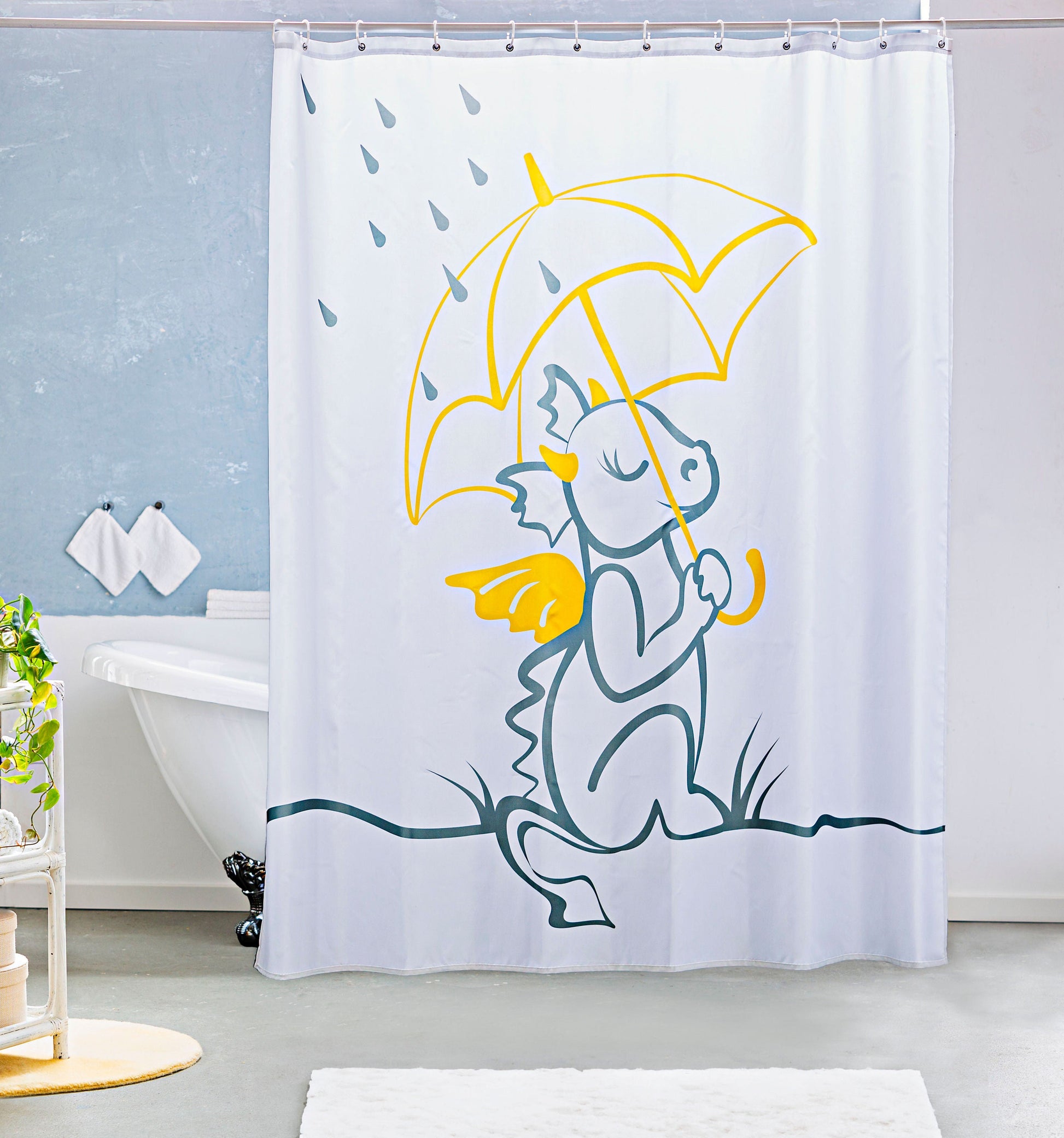 Der Duschvorhang "Drache" setzt einen originellen Hingucker im Bad und verleiht dem Morgengrauen eine muntere Portion Magie!