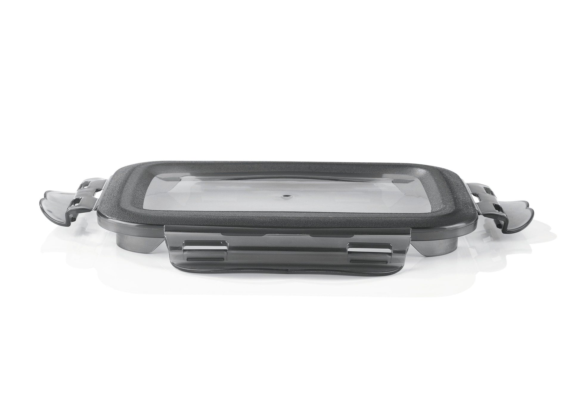 Die Dosen sind aus bruchsicherem, hygienischem und rostfreiem Edelstahl gefertigt. Die abgerundeten Ecken erleichtern die Reinigung. Transparente Deckel sorgen für einen Blick auf den Inhalt. -