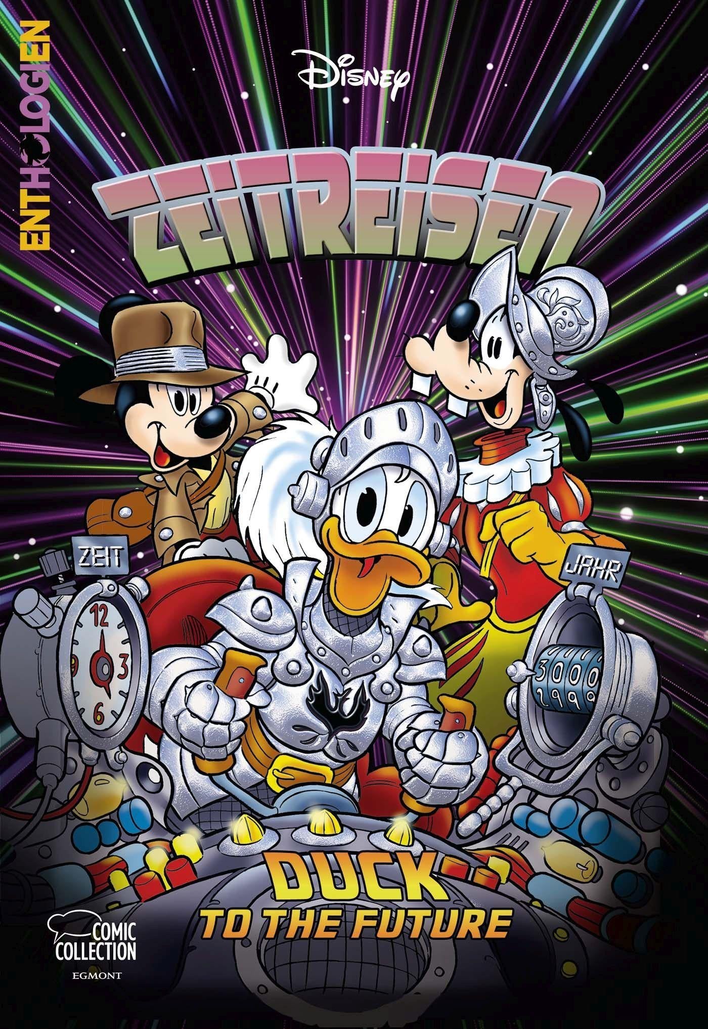 Zeitreisen: für die Menschheit ein alter Traum, in Entenhausen längst Realität - dank den zu Zeitmaschinen umgebauten Betten und Badewannen von Daniel Düsentrieb und natürlich den Professoren Zapotek und Marlin des Entenhausener Museums, die Micky und Goofy regelmäßig in die Vergangenheit schicken, um brennende Fragen der Weltgeschichte zu klären. Doch auch ein scheinbar normaler Abreißkalender kann hier zu temporalen Verwirrungen führen. Ein Band voller zeitlos spannender Zeitreisegeschichten.