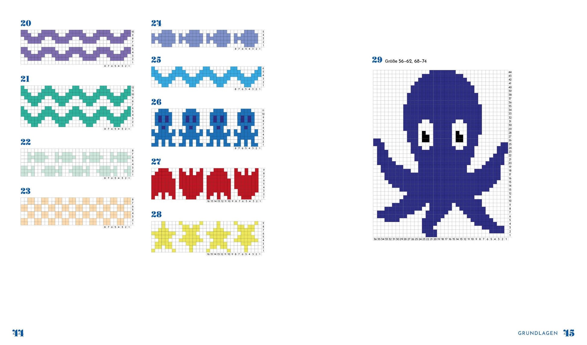 - Mustervielfalt: Du kannst aus einer breiten Palette von Mustern wählen, von klassischen Jacquard- und Einstrickmotiven bis hin zu spielerischen Ringel-, Punkte- und Streifenmustern. Lass deiner Fantasie freien Lauf und tausche die Motive nach Herzenslust auf den Strickprojekten aus, um einzigartige Kleidungsstücke für deine Liebsten zu gestalten.