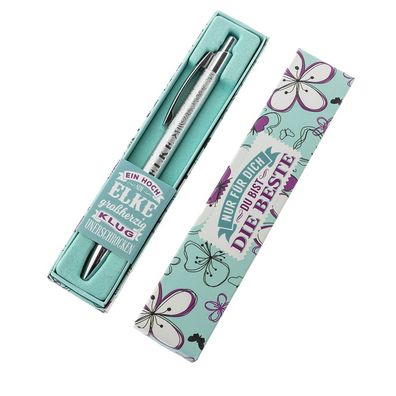 Zu jedem Anlass ein hochwertiger Kugelschreiber eine aufmerksame Geschenkidee – vor allem, wenn er mit dem Namen des Beschenkten personalisiert ist. Unsere ansprechende Auswahl an Kulis, in edlem Geschenketui mit originellem Spruch, wird stilbewusste Ladies und echte Kerle begeistern. Ausdrucksstarke, maskuline Designs mit insgesamt 50 Männernamen, feminine Muster für die 50 Frauennamen und 20 allgemeine Titel machen das neue Sortiment an kreativ gestalteten H&H Kugelschreibern aus. Die Kulis liegen angenehm in der Hand und sorgen für ein elegantes Schriftbild.