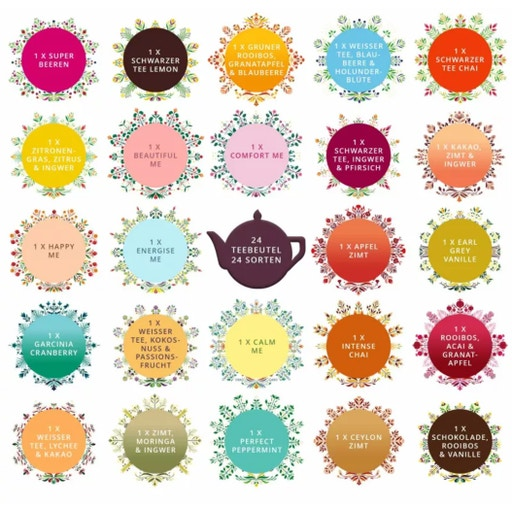 Genieße die tolle Auswahl an Kräuter-, Früchte-, Gewürz-, Rooibos-, Grün-, Schwarz- und Weisstees. Für eine aufregende Genussreise durch die Welt des Tees.