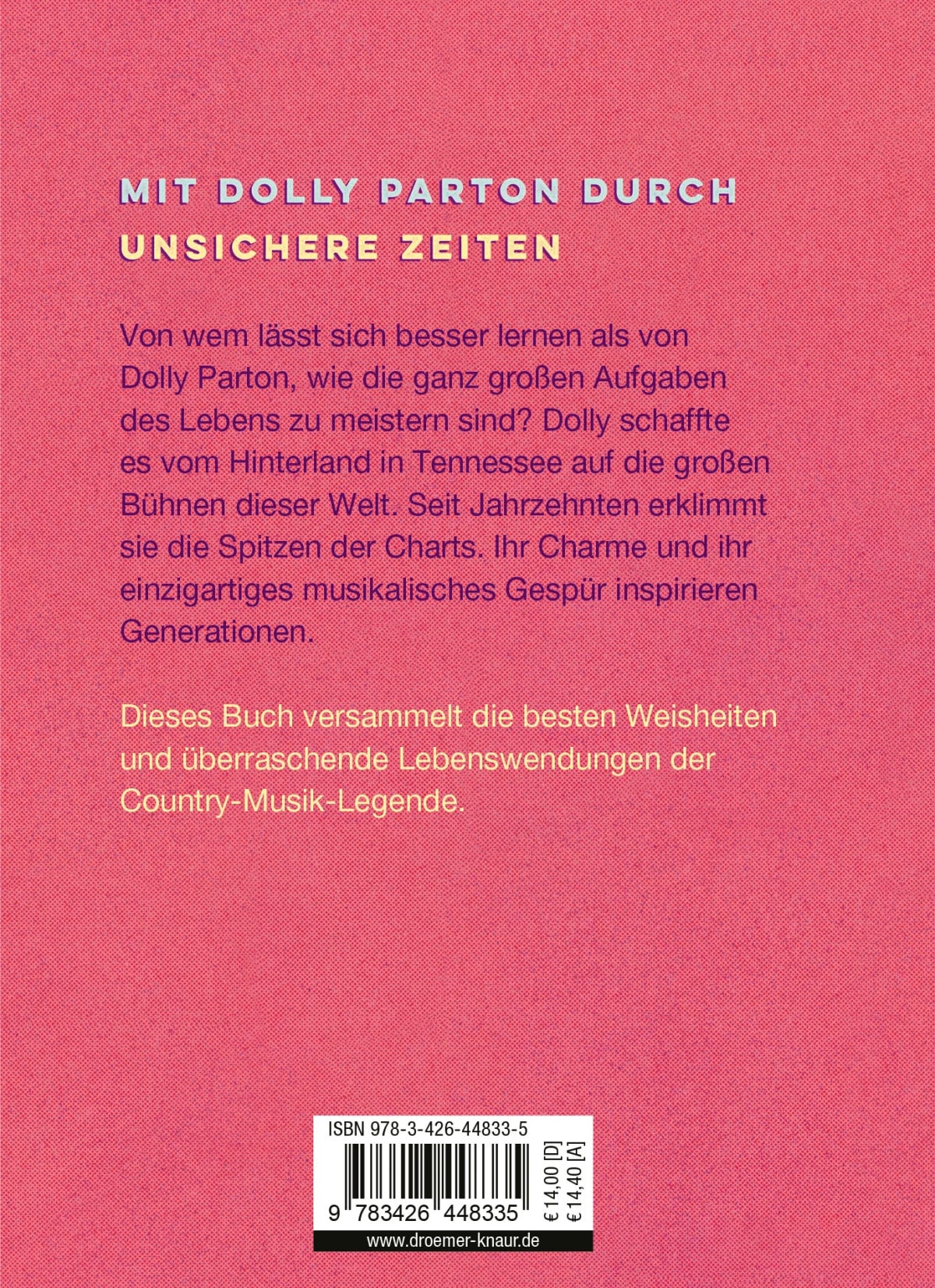 Unzählige können bei Songs wie 9 to 5, Jolene und I Will Always Love You mitsingen. Ihr Look mit den opulenten blonden Perücken wird weltweit wiedererkannt. In den sozialen Medien freuen sich alte und junge Fans über Dolly Partons Sprüche, Zitate und Lebensweisheiten, über ihre Selbstironie und ihren Lebensmut. Von wem lässt sich also besser lernen, wie die ganz grossen Aufgaben zu meistern sind: Setz ein Lächeln auf, nimm dich nicht zu ernst und denk dran, dass Härten manchmal dazugehören.