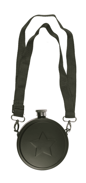 Flachmann "Militär" als Feldflasche mit Schulterriemen, Edelstahl