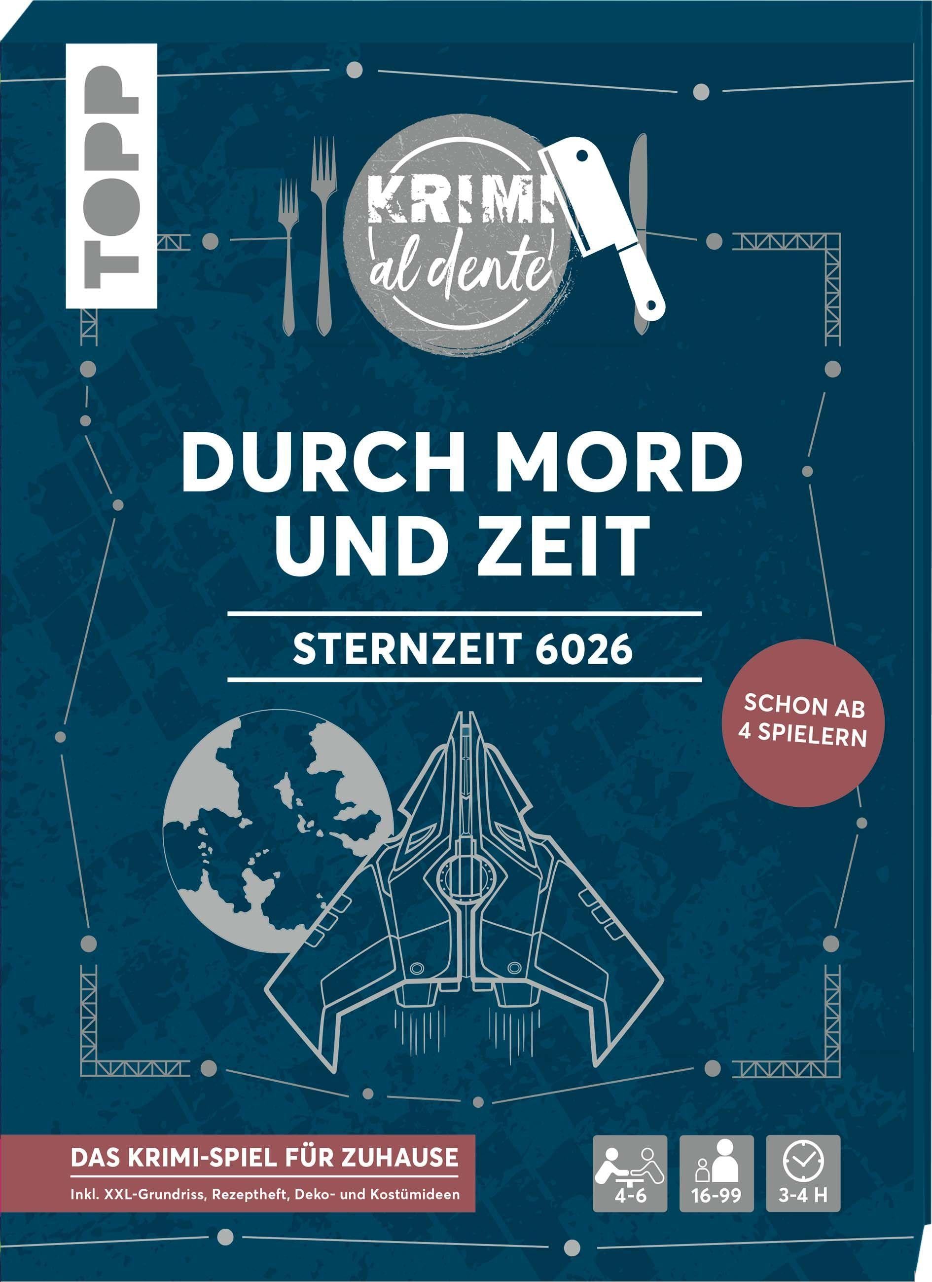 Tauche mit deinen Gästen in einen spannenden, unterhaltsamen und mörderischen Abend auf dem Sternkreuzer Alpha Omega in einer weit entfernten Galaxie ein. Während des Krimi-Dinners müssen du und deine Gäste einen Mordfall aufklären. Versucht, durch gezielte und taktische Fragen an Informationen zu kommen, die euch auf die Spur des Täters oder der Täterin führen. Durch richtiges Kombinieren und Ausschließen könnt ihr den Mord aufklären und eure Mission zur Vereinigung der Systeme erfolgreich fortsetzen.Zusätzlich zum Krimifall sind in dieser Mappe tolle Extras enthalten: Ein Rezeptheft mit passenden Menüvorschlägen sowie Tipps für Verkleidungen und Dekorationen machen deinen Abend noch unvergesslicher. Worauf wartest du noch? Lade deine Gäste ein und genießt zusammen einen spannenden Abend. Ideal für Geburtstage, einen Abend mit Freunden oder der Familie. Jetzt neu: Schon ab 4 Personen spielbar!.