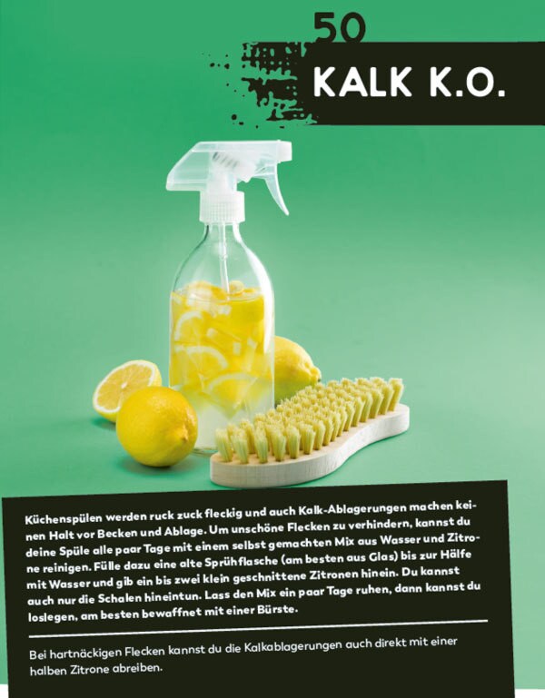 Wer will nicht gern nachhaltiger leben - aber ohne ständig alles Mögliche beachten zu müssen? Hier zeigen wir euch, wie ihr im Handumdrehen eure alten Jeans upcycelt, tolle Putzmittel ohne Chemie herstellt oder Abfall kreativ vermeiden könnt. Mit diesen 222 genialen Lifehacks rund um Upcycling, Energiesparen und Ressourcen-Schonen wird ein besserer und bewusster Alltag zum Kinderspiel! Neu gestaltete und komplett überarbeitete Ausgabe des erfolgreichen Bands "Trick 17 - Nachhaltig leben", ISBN 978-3-7724-4976-5.