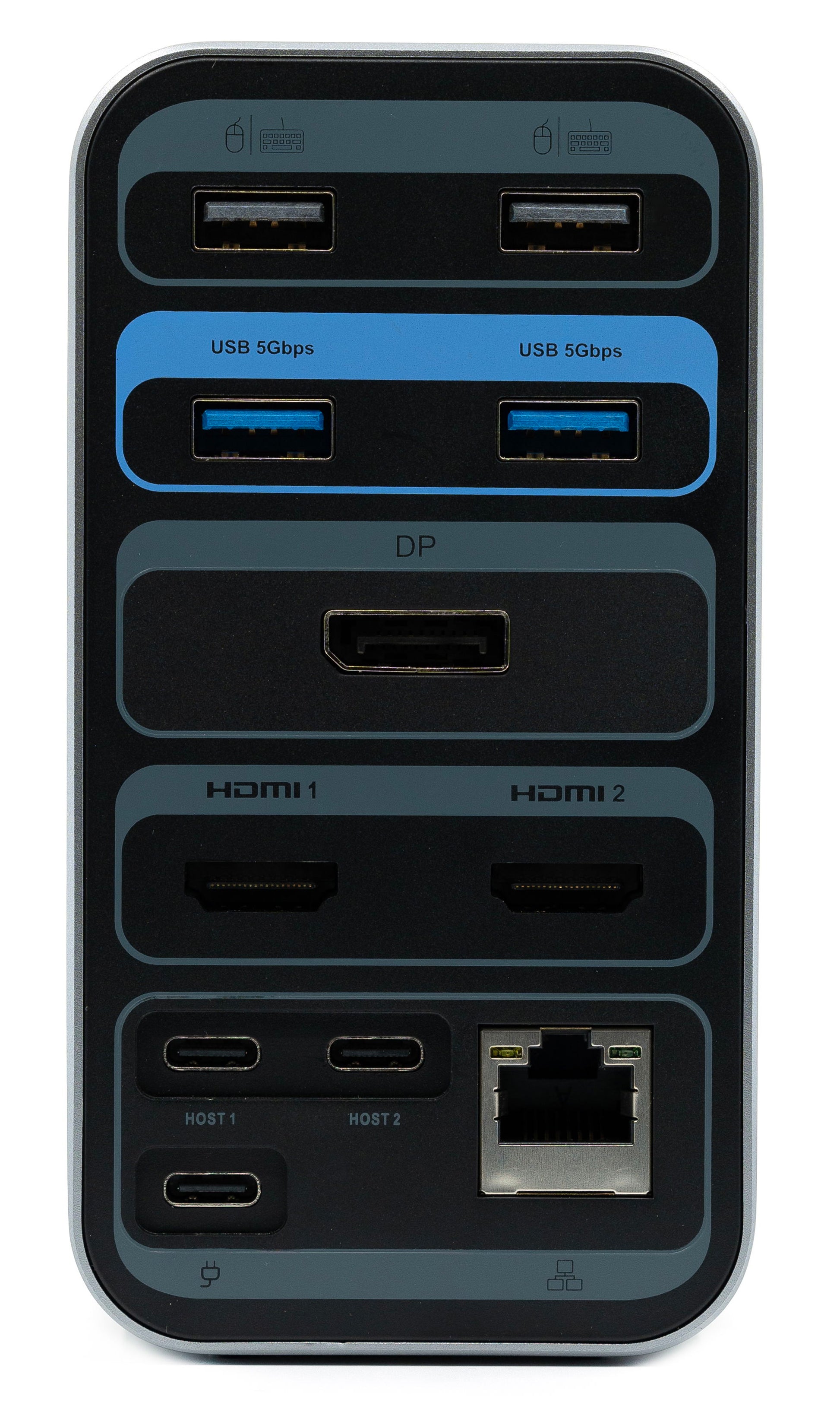 Anschlüsse: HDMI (2), DisplayPort (1), USB-A (6), USB-C (4), RJ45 (1), Klinkenbuchse 3,5 mm (1)