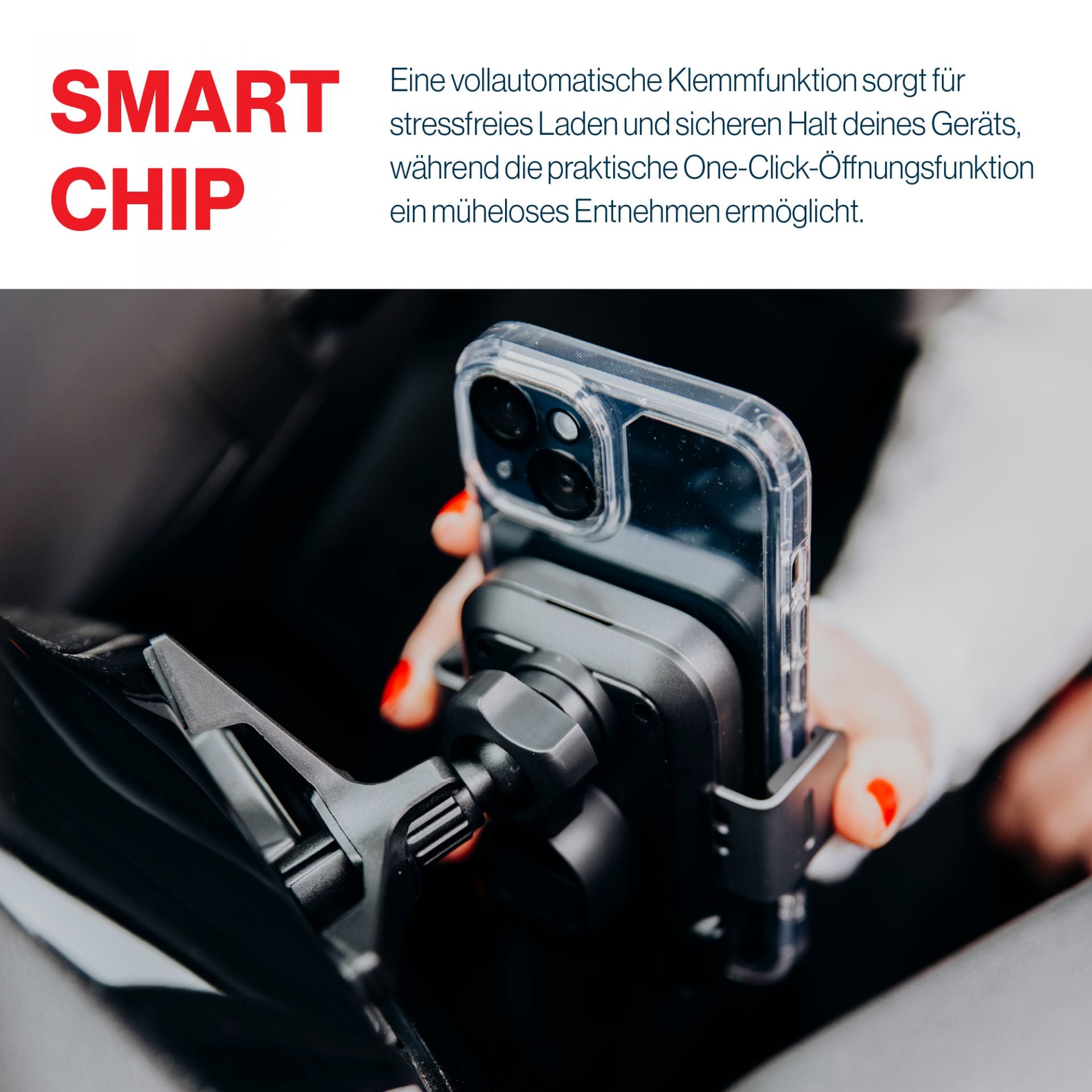 Der intelligente Chip im freeVoice Wireless Pro Car Charger erkennt Ihren Smartphone-Akku und ermöglicht eine optimale Ausrichtung für die effizienteste Ladung. Diese smarte Funktion gewährleistet eine perfekte Kommunikation zwischen dem Ladegerät und Ihrem Gerät.