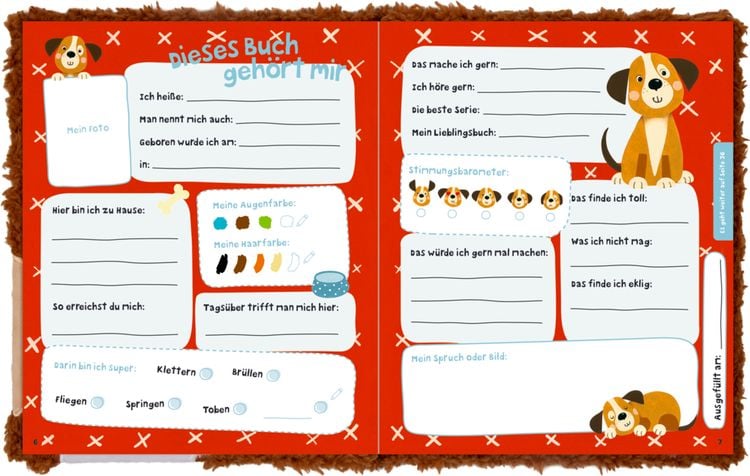 Das erste Freundebuch zum Kuscheln, Eintragen und Liebhaben! Dieses kuschelige Freundebuch bietet auf 96 Seiten genug Platz zum Eintragen für alle Freunde. Mit Geburtstagskalender und tollen Extraseiten für alle deine Freunde und dich zum gemeinsamen Ausfüllen! Das besondere Hunde-Cover aus Plüsch und die bunten Illustrationen im Innenteil machen dieses Freundebuch zum besonderen Eintrag-Spaß.