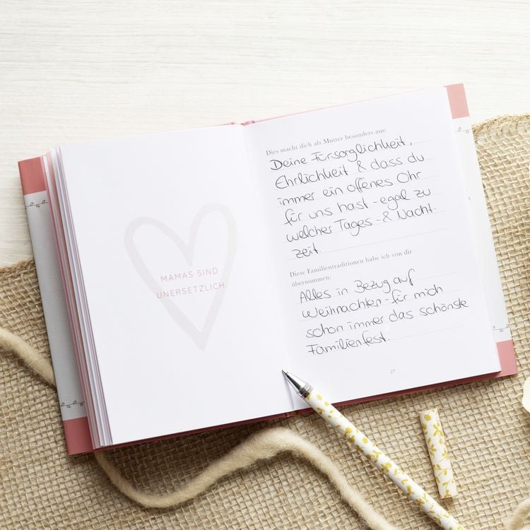 Das Original – ein zauberhaftes Ausfüllbuch als Geschenk für deine Mama Ein ganz persönliches Erinnerungsbuch mit inspirierenden Fragen und Listen zum Ausfüllen und Ankreuzen Von Elma van Vliet , der Bestseller-Autorin der Erzähl mal -Bücher Viel Platz für Fotos, Erinnerungen und eigene Geschichten Mit Wende-Umschlag, der als Geschenkpapier verwendet werden kann Es ist nicht nur ein Ausfüllbuch – es ist eine Möglichkeit, deine Liebe zu deiner Mama festzuhalten und zu teilen Das Ausfüllbuch Für Mama ist ein ganz persönliches Geschenk für Mütter - und eine Gelegenheit tiefgründige Gespräche anzuregen. Lustige, überraschende und inspirierende Fragen wie „Über diese Ereignisse von früher muss ich noch immer lachen“ oder „Auf diese Weise hast du dafür gesorgt, dass wir uns zu Hause wohlgefühlt haben“ helfen dir beim Ausfüllen des Erinnerungsbuchs. Vier Abschnitte begleiten dich beim Festhalten deiner besonderen Erinnerungen: »Erinnerungen an meine Kindheit« – »Über die besondere Person, die du bist« – »Wofür ich dir dankbar bin« und »Wünsche und Träume für uns beide«. Ausgefüllt wird das zeitlos schöne Eintragbuch zu einem einzigartigen und liebevollen Geschenk für jede Mutter, zum Beispiel zum Muttertag, Geburtstag oder zu Weihnachten. Für Mama bietet dir und deiner Mama viel Platz für liebevolle und schöne Momente und die Möglichkeit, sie für immer zu bewahren.