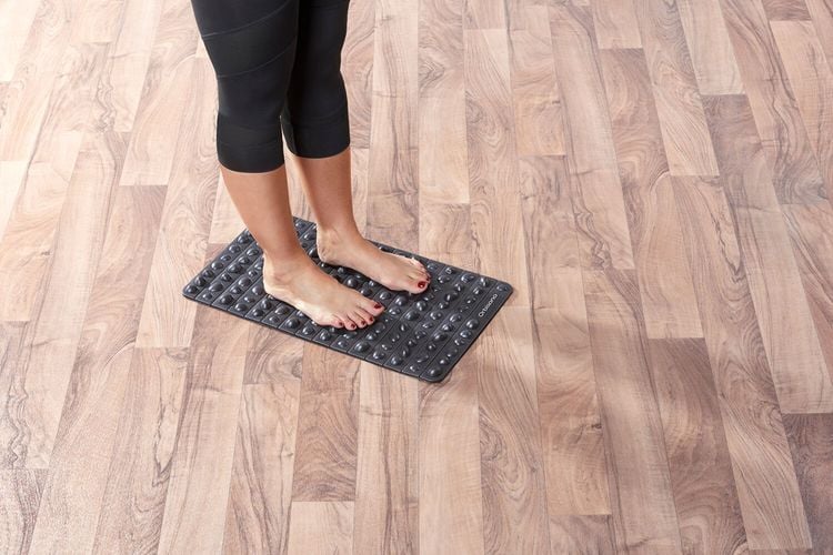 Fördert die Durchblutung Entspannung, Regeneration und Erholung Für mehr Stabilität und eine bessere Koordination Gönnen Sie Ihren Füßen eine wohltuende Massage. Mit ihrer Oberflächenstruktur stimuliert die Fußmassagematte die Fußreflexzonen und regt die Durchblutung an. Die Noppen der Matte geben Ihnen das Gefühl über flache Kieselsteine zu laufen. Der Massagedruck wird dabei allein durch Ihr Körpergewicht ausgelöst. Besonders entspannend und regenerierend wirkt die Fußmassagematte nach einem langen Tag auf den Beinen oder nach dem Sport. Auch bei kalten Füßen ist eine solche Massage ideal. Die Fußmassagematte sorgt mit ihrer durchblutungsfördernden Wirkung schnell für warme Füße. Leicht abwaschbar fu?r eine hygienische Anwendung Aus Kunststoff (EVA) Härtegrad: 45 - 50° L x B x T: 53 x 30,5 x 1,8 cm Bestellen Sie am besten gleich online die Fußmassagematte.