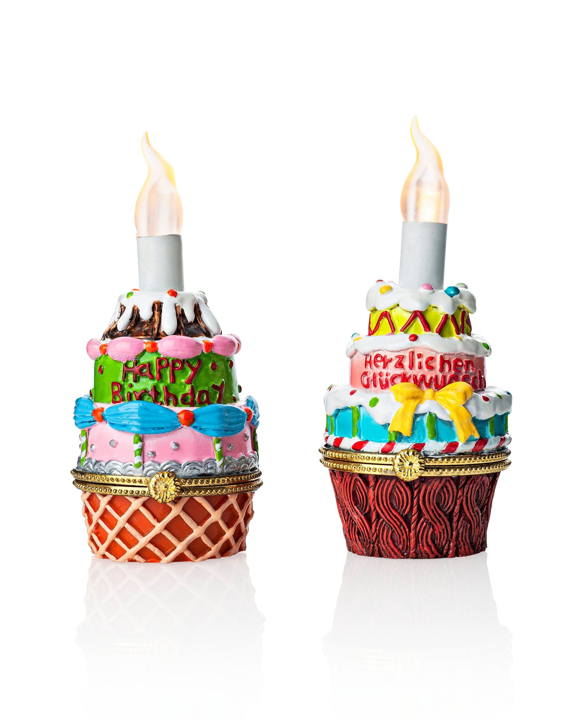 Geschenkdosen mit Licht + Sound: 2 Überraschungs-Törtchen mit Spezialfüllung