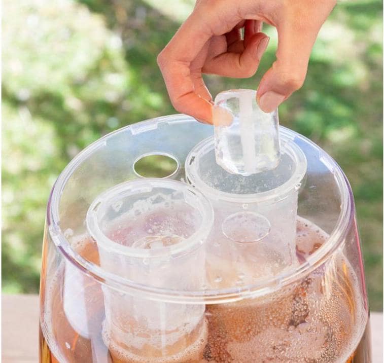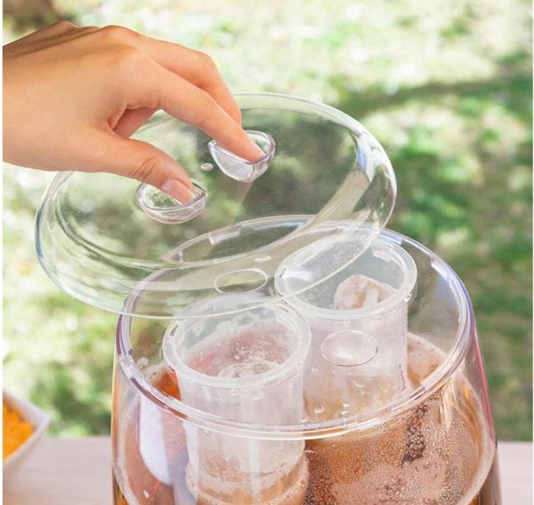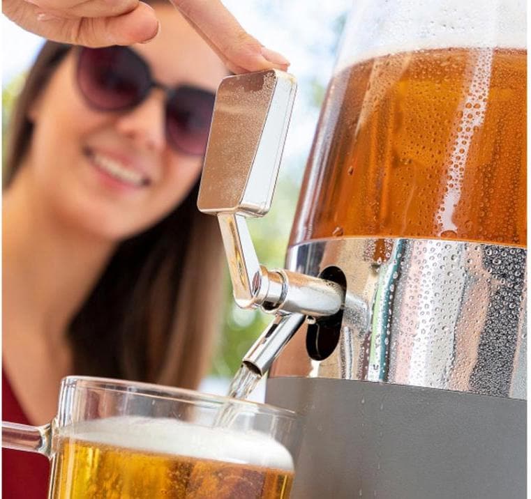 Der Getränkespender ist mit zwei herausnehmbaren Eistanks ausgestattet, welche es ermöglichen Ihr Getränk kühl zu halten, ohne es zu verwässern. Ausserdem verfügt der Spender über einen doppelten Deckel und ein grosses unteres Staufach, in dem Gläser, Snacks und mehr aufbewahrt werden kann. Dank des praktischen Hebelzapfhahns lassen sich die Getränke ähnlich wie bei einer professionellen Bierzapfanlage ganz einfach und bequem ausschenken. Lassen Sie sich von diesem tollen Getränkespender beeindrucken und profitieren Sie vor allem im Sommer von eiskalten, erfrischenden Drinks!