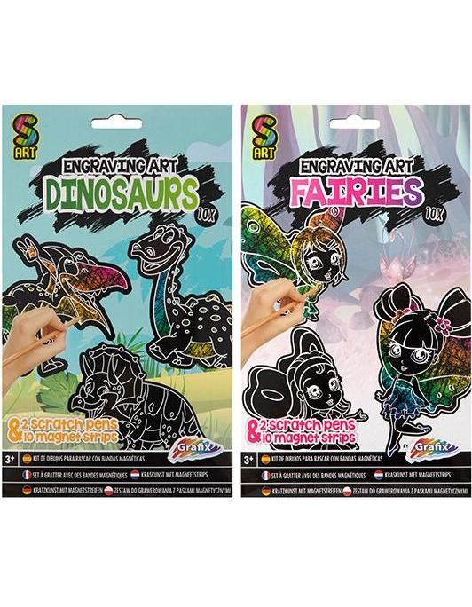 Kratzfolien-Set 10 Blätter, 2-fach assortiert Dino und Fee.