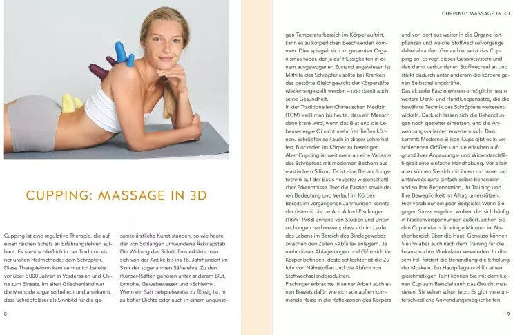 Cupping ist im Deutschen eher unter der Heilmethode Schröpfen bekannt. Heute nutzen neben Sportlern wie Michael Phelps und Hollywoodstars wie Gwyneth Paltrow auch viele Therapeuten die Methode zur Entspannung und Schmerzlinderung. Neuerdings gibt es pflegeleichte Cups aus Silikon, die man einfach mit der Hand zusammendrückt und auf die Haut setzt. Sie sind unzerbrechlich und leicht zu reinigen. Durch den von den Cups erzeugten Unterdruck werden Verspannungen gelöst, die Durchblutung stimuliert, der Lymphfluss angeregt und Schmerzen "wegmassiert". Zudem aktiviert Cupping das Immunsystem und trägt zur Linderung von Beschwerden bei z. B. Asthma, Migräne, Bluthochdruck, Verdauungsproblemen oder Burnout bei. Das Buch "Cupping" bietet eine kompakte theoretische Einführung in diese Methode und beschreibt die unterschiedlichen Anlegetechniken. Im letzten Kapitel werden die Beschwerden von A bis Z mit ihren speziellen Cuppingtechniken Schritt-für-Schritt beschrieben und bebildert.