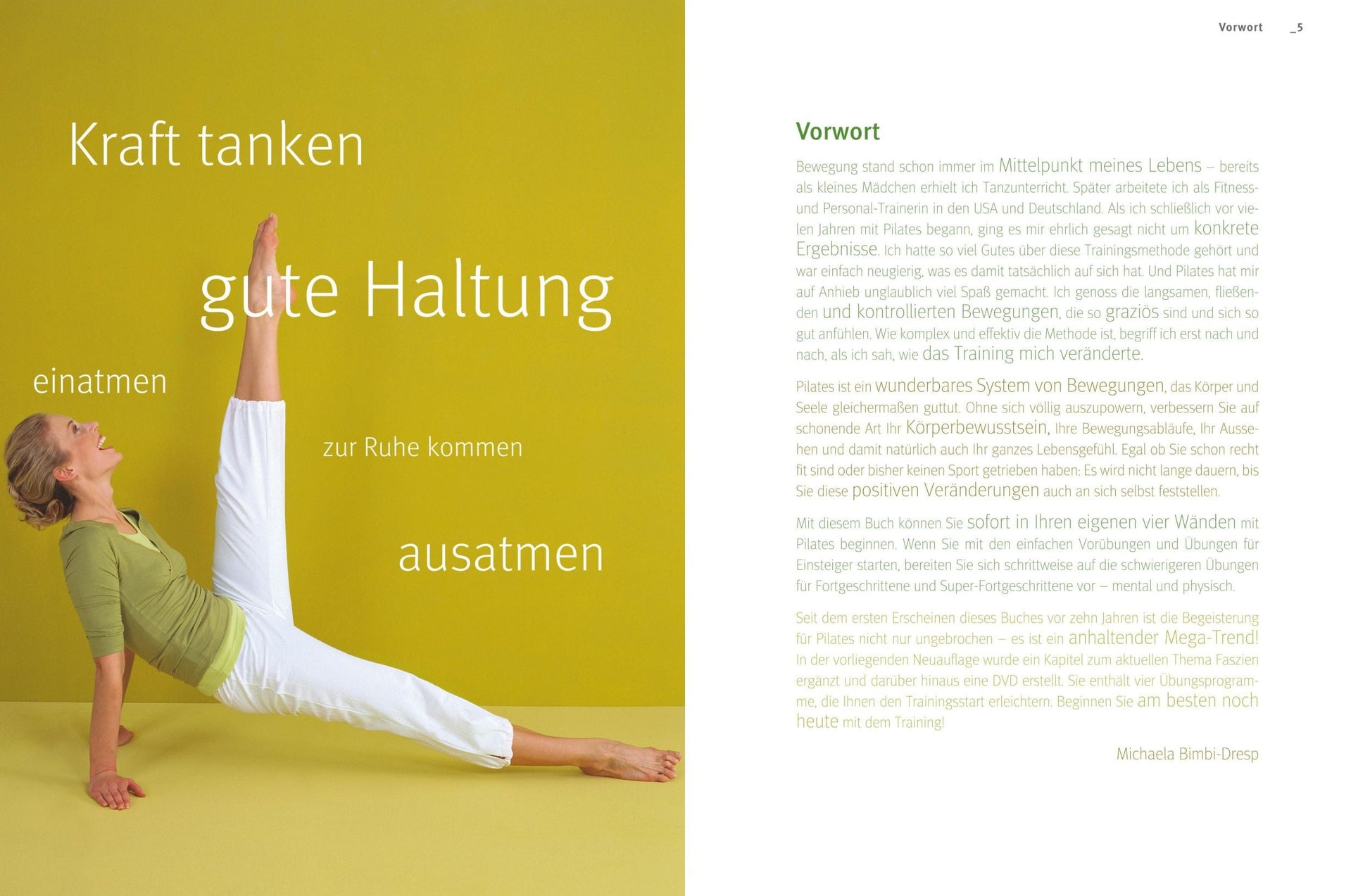 Mit diesem komplett aktualisierten Standardwerk können Frauen und Männer optimal nach der Pilates-Methode trainieren. Sie bekommen eine fundierte Einführung in das Training mit allen wichtigen Infos zu Philosophie, Trainingsgrundlagen und anatomischem Hintergrundwissen. Im Praxisteil werden die Original-Pilates-Übungen Schritt für Schritt genau erklärt; dazu gehören auch Tipps gegen typische Fehler, Übungsvarianten und beim Üben hilfreiche Visualisierungen. Trainingsempfehlungen für Menschen mit viel oder wenig Zeit, bei Rückenproblemen und in der Schwangerschaft runden den Übungsteil ab. Auf der DVD (Laufzeit: 75 Minuten) befinden sich drei maßgeschneiderte Übungsprogramme für Einsteiger, Fortgeschrittene oder Super-Fortgeschrittene und motivieren zum direkten Einstieg ins Training. Kein Konkur-renztitel kann mit dieser Fülle an Informationen und praktischen Anregungen mithalten.