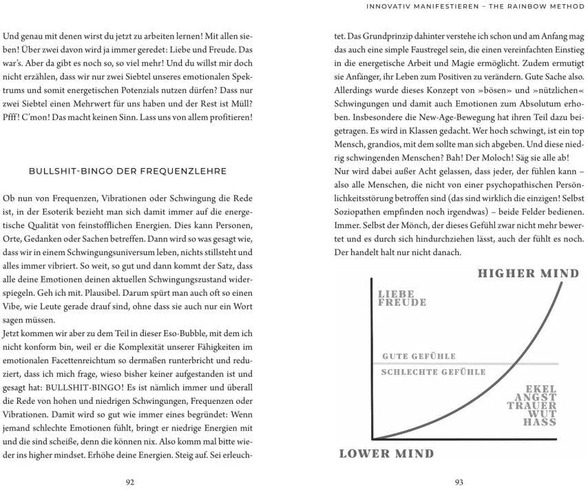 Sich positive Gedanken machen und dann auf die Manifestation ewig lange warten? Damit ist jetzt Schluss! Shisha Rainbows geniale neue Methode des emotionalen Manifestierens bedient sich der starken Energien, die in Gefühlen wie Wut, Hass, Trauer und Verzweiflung enthalten sind. Durch das so genannte Channeln werden unsere Emotionen als Energiequellen fokussiert und ausgerichtet. Eine der bekanntesten Hexen zeigt in diesem Buch, wie du das Manifestieren an dich anpasst, anstatt andersherum. So kannst auch du endlich all deine Ziele erreichen und dir deine Wünsche verwirklichen. Tief verbunden mit dem Universum. F*ck the universe!
