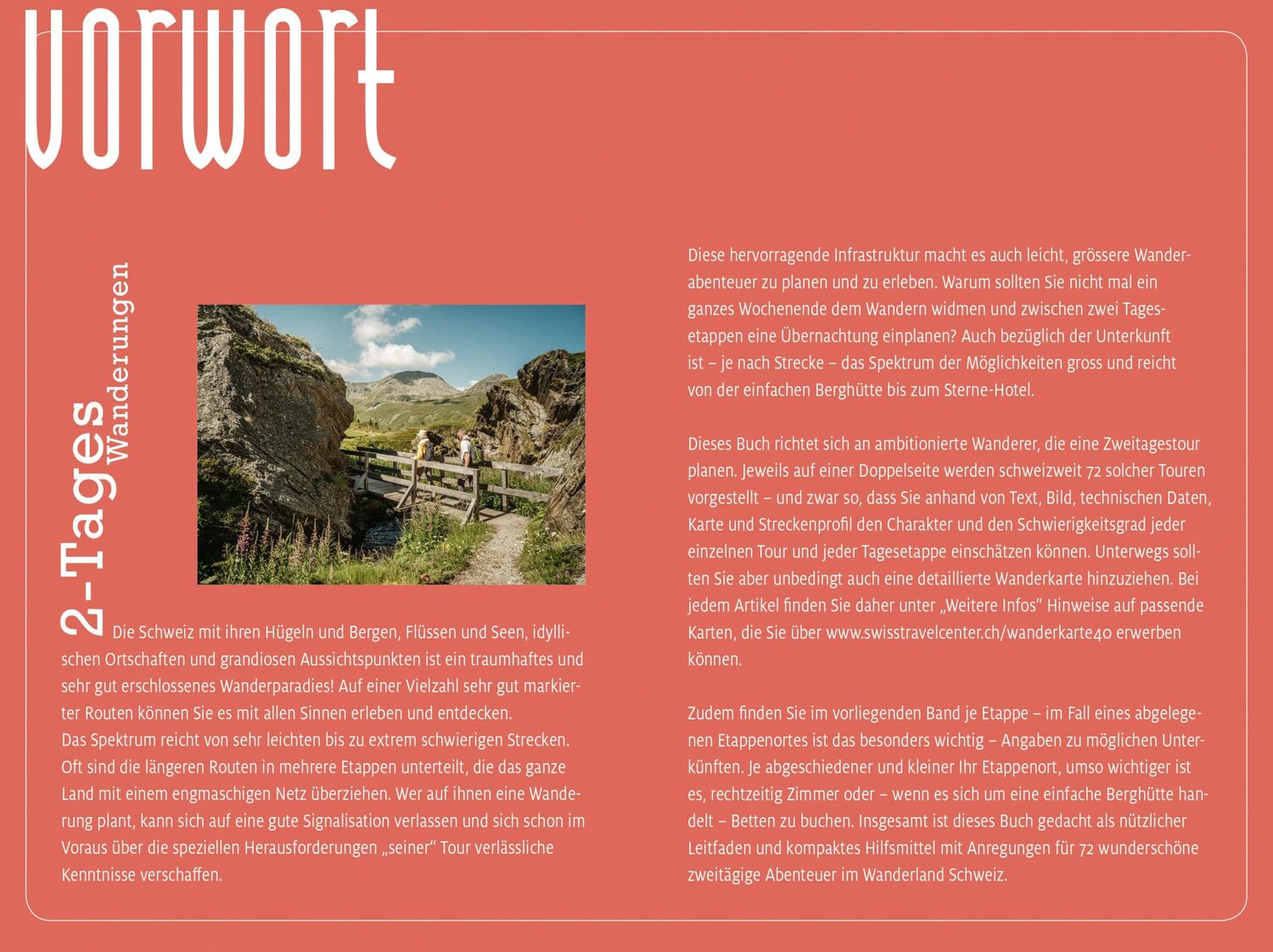 Zweitageswanderungen bietet eine tolle Auswahl an 72 Tourenvorschlägen mit jeweils einer Zwischenübernachtung. Unsere sorgfältig ausgewählten Touren entführen Sie auf anspruchsvolle Wanderrouten, die Ihre konditionellen Ambitionen wecken, ohne dabei grössere technische Schwierigkeiten meistern zu müssen