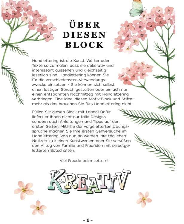 Für alle Handlettering-Fans gibt es jetzt diesen hochwertigen Papierblock im angesagten Cottage-Design. Eine zauberhafte Ergänzung im A6-Format für jede Handlettering-Grundausstattung. Kreativbegeisterte dürfen sich über 75 feste Papiere in 5 verschiedenen Farben freuen, die sich wunderbar für individuelle Handlettering-Botschaften zum Verschenken und Aufhängen eignen. Der Handlettering-Grundkurs, tolle Übungsalphabeten und Lettering-Inspirationen sorgen für den ultimativen Handlettering-Spaß!