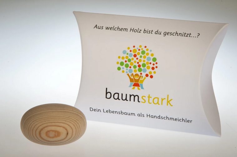 Die Handschmeichler werden in einer attraktiven Verpackung (Kissenschachtel) geliefert, auf deren Rückseite sich das persönliche Baumhoroskop befindet.