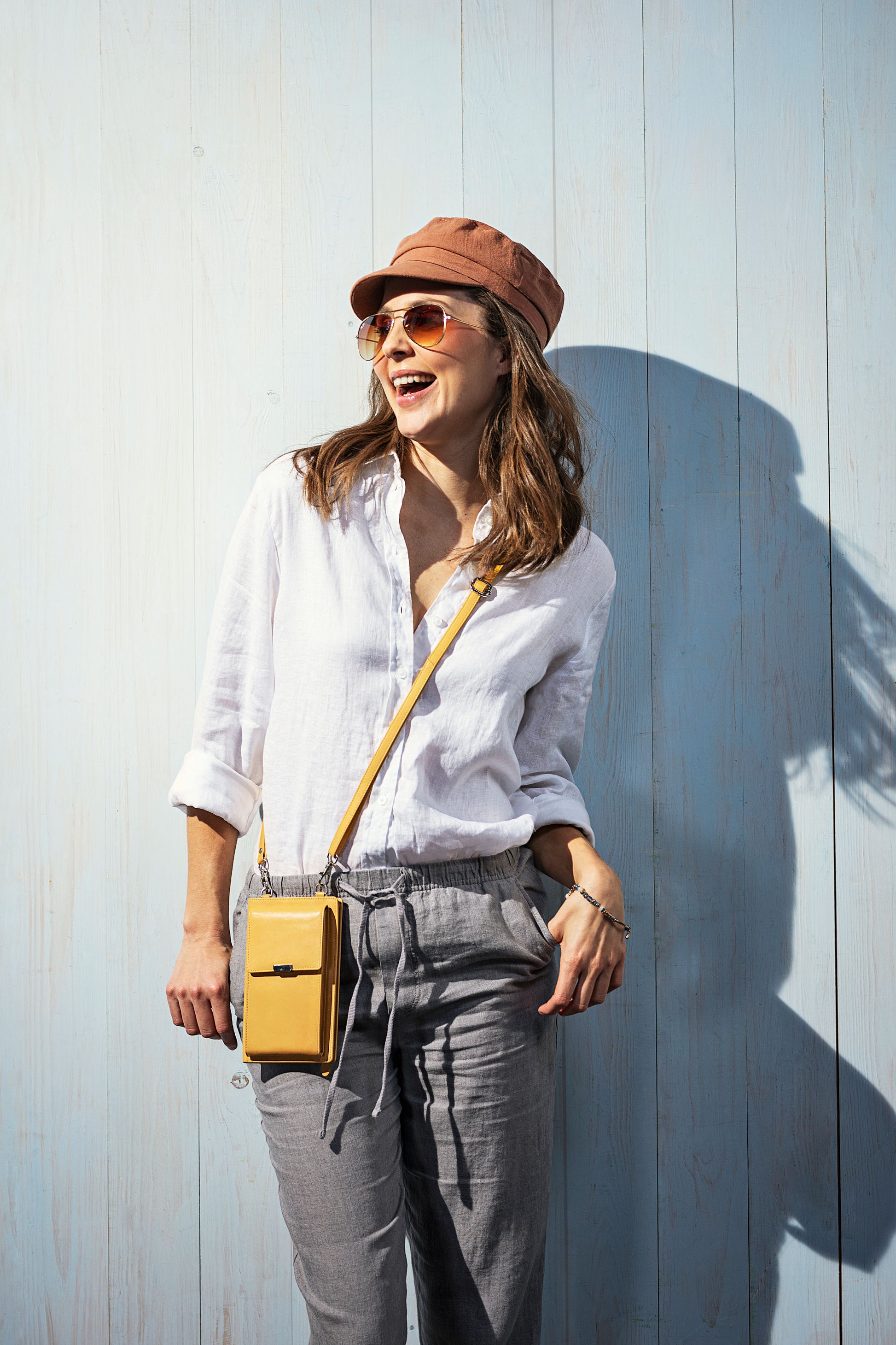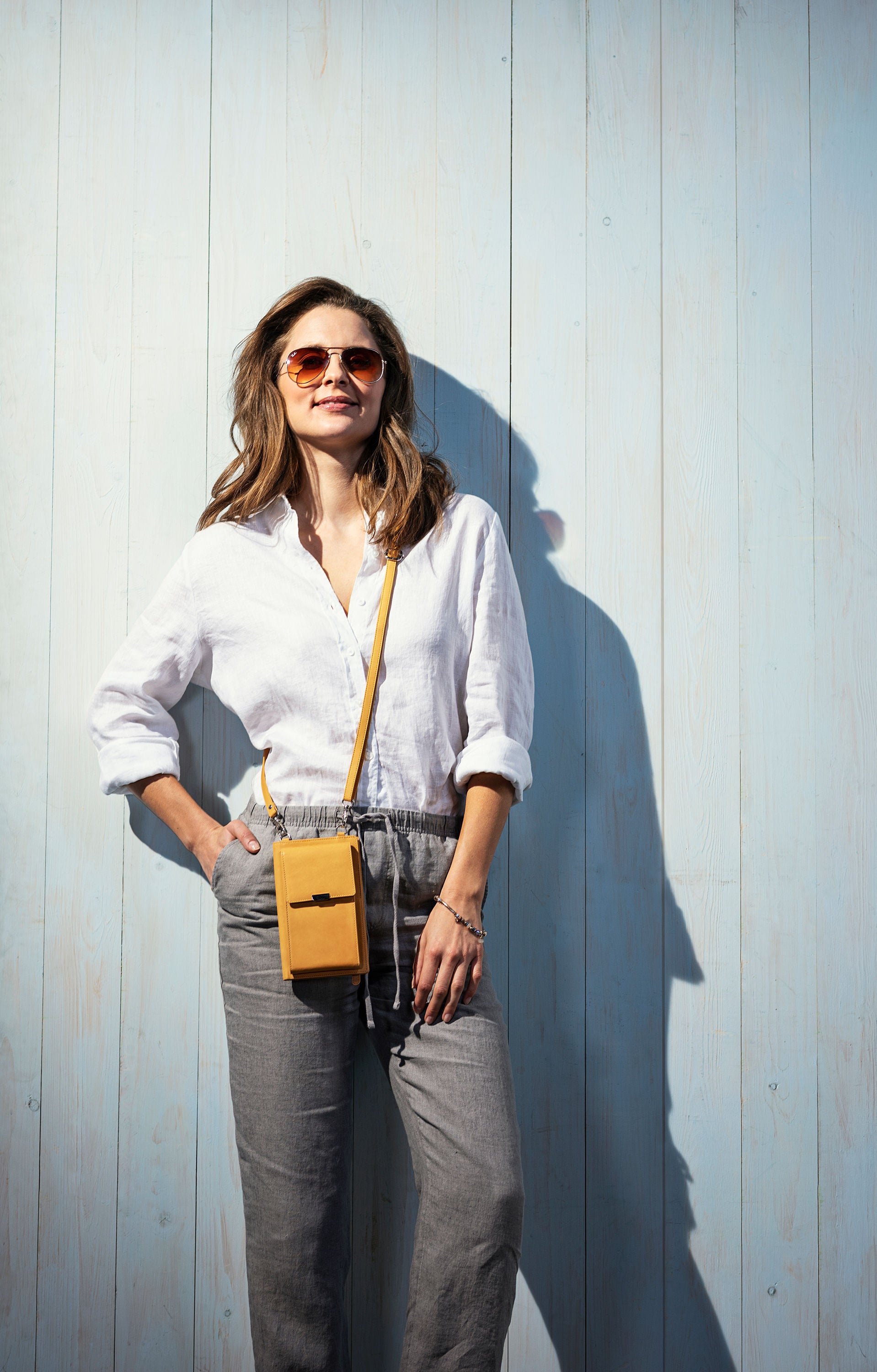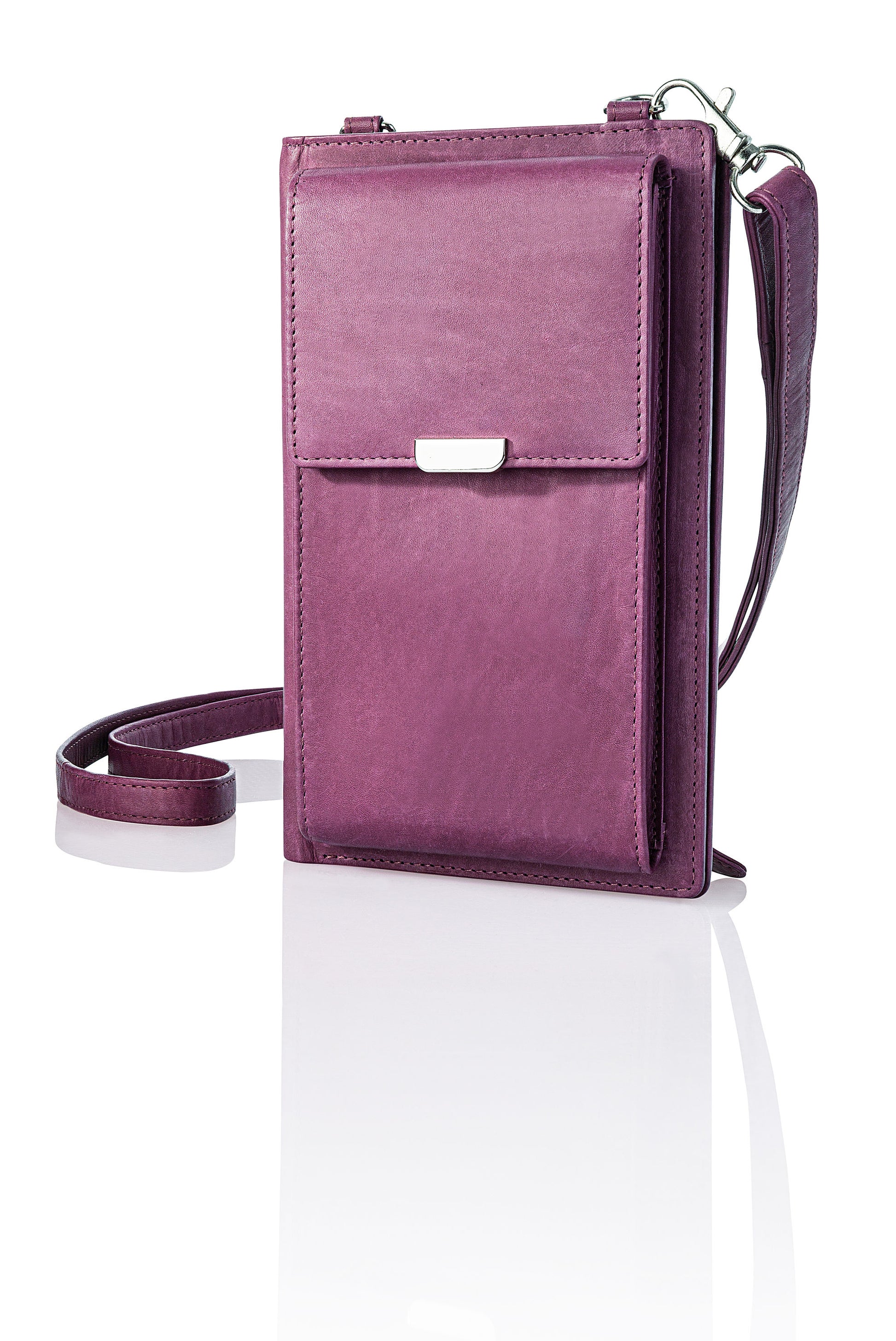 Super-praktische Cross-Body-Tasche aus Leder mit funktionaler Einteilung. Bietet viel Platz: mit Schein-, Sicht- und Kartenfächern. Dazu ist das Handy immer geschützt und griffbereit.