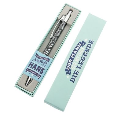 Zu jedem Anlass ein hochwertiger Kugelschreiber eine aufmerksame Geschenkidee – vor allem, wenn er mit dem Namen des Beschenkten personalisiert ist. Unsere ansprechende Auswahl an Kulis, in edlem Geschenketui mit originellem Spruch, wird stilbewusste Ladies und echte Kerle begeistern. Ausdrucksstarke, maskuline Designs mit insgesamt 50 Männernamen, feminine Muster für die 50 Frauennamen und 20 allgemeine Titel machen das neue Sortiment an kreativ gestalteten H&H Kugelschreibern aus. Die Kulis liegen angenehm in der Hand und sorgen für ein elegantes Schriftbild.