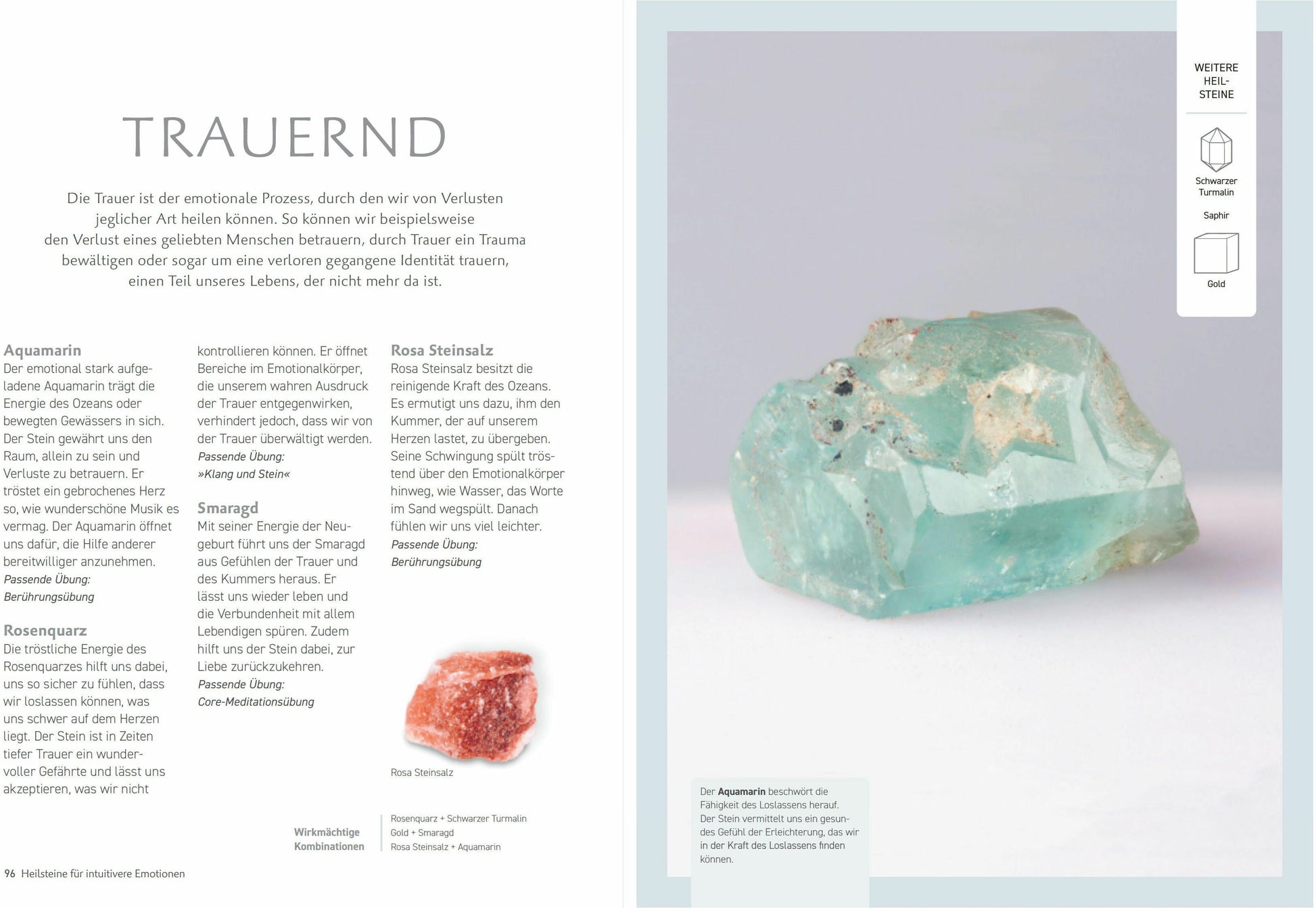 - Die passenden Steine kombininieren mit Meditation, Schlafritualen, Klangübungen, Tagebuchführen etc. zur Steigerung des seelischen und körperlichen Wohlbefindens