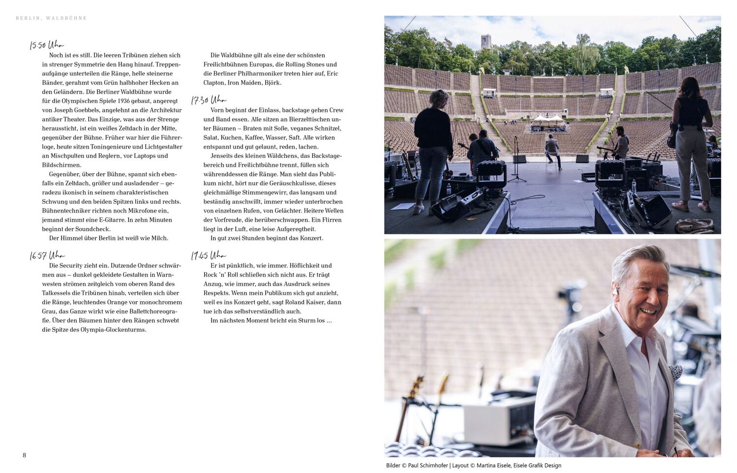 fängt die unvergleichliche Atmosphäre dieser Events ein: magische Momente, die Verbundenheit von Künstler, Band und Fans - und dieses alle erfassende, überwältigende Glücksgefühl. Wie von selbst erwachen die bekannten Songs, und wir sind hautnah dabei, wenn Roland Kaiser auf Tour geht. Er nimmt uns mit in den Tourbus, gibt exklusive Einblicke backstage und erzählt von seinen Anfangsjahren, als er es sich nicht hätte träumen lassen, einmal vor zigtausend begeisterten Fans zu singen ...