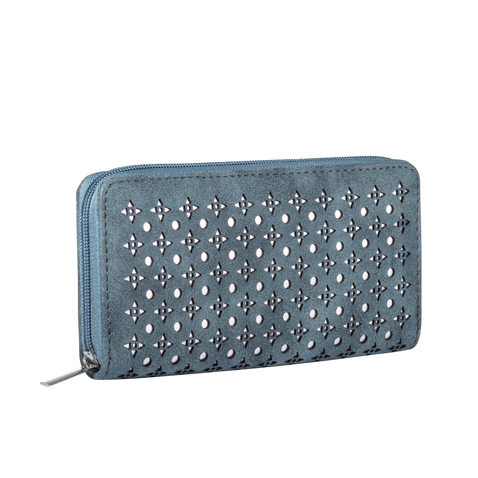 Bildschöne Damen-Reissverschlussgeldbörse in exklusiver Lasercut-Optik. Der Hintergrund schimmert edel silbermetallicfarben durch die filigranen Cuts. Doch dieses Portemonnaie besticht nicht nur durch die exklusive Optik, auch die inneren Werte überzeugen: Mit vielen praktischen Steckfächern für Führerschein, Personalausweis, Einkaufszettel etc. sorgt die Geldbörse CELINE für Ordnung und Übersicht im Kartenuniversum! Mit zusätzlichem Reissverschlussmünzfach. Ein kleineres Handy passt auch mit rein.