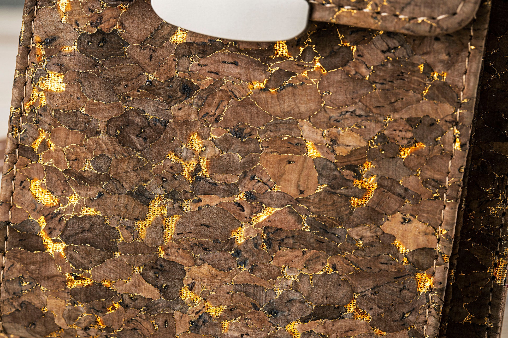 • aussen Korkmaterial mit goldfarbenen Akzenten