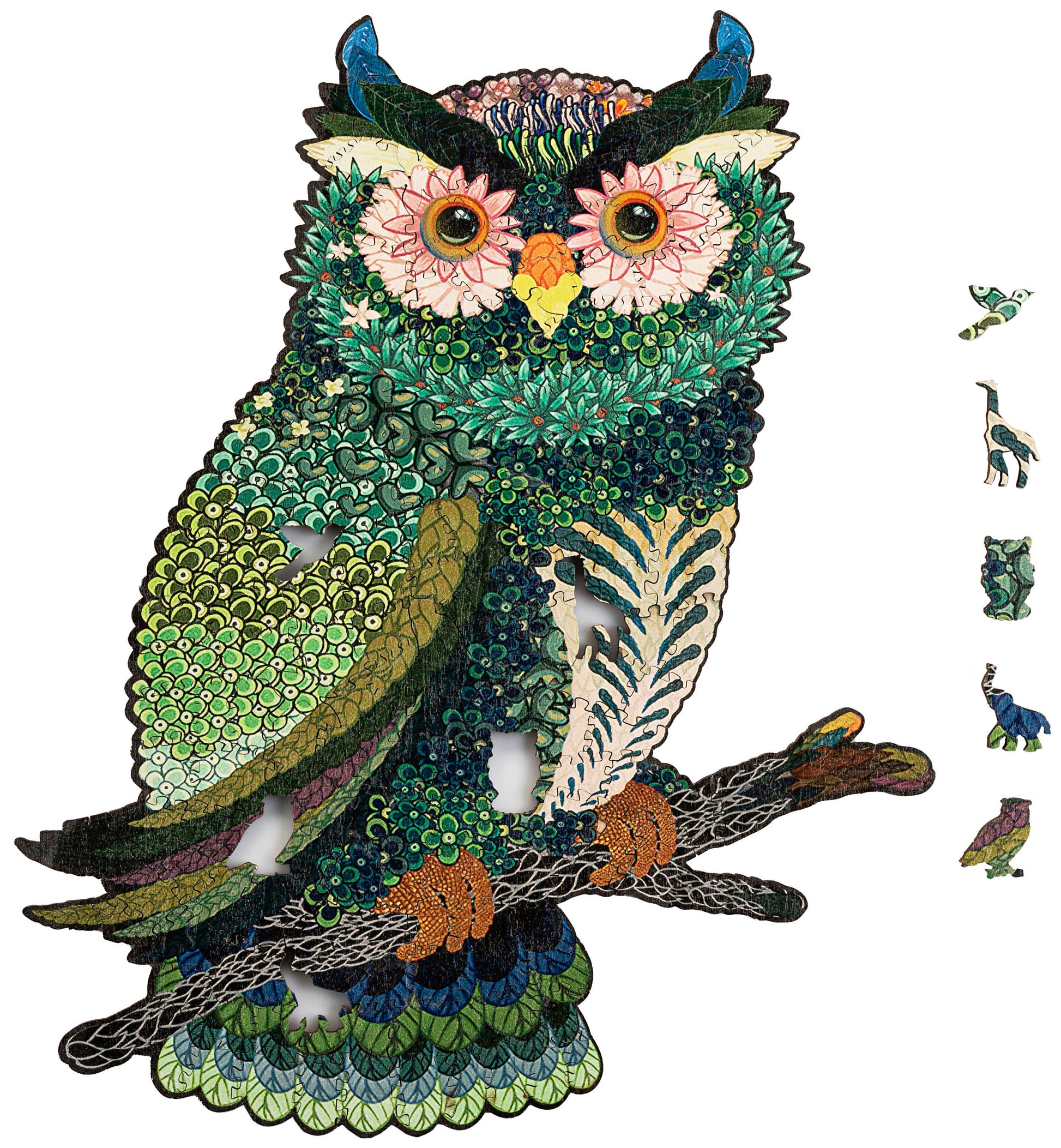 Das etwas andere Puzzle: Holzpuzzle "Waldeule" mit besonders geformten Teilen