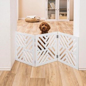 Eine flexible Barriere für Hunde hilft Ihnen, Ihre Haustiere von verbotenen Räumen fernzuhalten, ohne sie einsperren zu müssen. Einfach ohne Bohren installieren – einfach entfalten und dort platzieren, wo es benötigt wird, zum Beispiel vor Treppen, in der Tür oder zum Kamin. Die Barriere ist freistehend, so dass Sie sie frei bewegen können. Und wenn du es nicht brauchst, flippst du es einfach und sparst Platz.