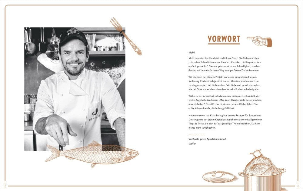 DIE NEUE KÜCHENBIBELIn seinem neuesten Buch aus der Reihe "Hensslers Schnelle Nummer" beweist Steffen Henssler wieder einmal, dass Kochen nicht kompliziert sein muss und wagt sich an echte Klassiker. Herausgekommen ist ein modernes Standardwerk für alle, die Rezeptklassiker wie Spaghetti Bolognese, Wiener Schnitzel oder Käsekuchen lieben und ein Nachschlagewerk für alle, die wissen wollen, wie sie diese Gerichte ganz einfach zubereiten können. Steffen Henssler nimmt mit diesem Kochbuch die Angst vorm Kochen und erklärt, wie auch aufwendigere Gerichte, wie Gulasch, Sauerbraten oder Kohlrouladen ganz unkompliziert gelingen. Tipps und Tricks zu jedem Rezept garantieren zahlreiche Erfolgserlebnisse am Herd - denn Kochen darf ganz einfach sein!