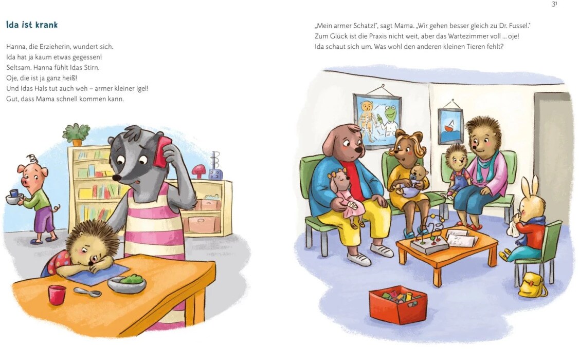 Die allerersten Herausforderungen im Alltag spielerisch meistern!Nanu, wer ist denn da schon so früh wach? Ida Igel kann es kaum erwarten, denn für sie ist jeder Tag ein kleines Abenteuer. Mal feiert sie mit dem Dachs in der Kita Geburtstag, mal buddelt sie mit Oma im Garten, oder macht mit Mama und Papa einen Ausflug in den Park. Wenn man so neugierig ist wie Ida, dann gibt es überall viel zu entdecken! Auch für die Kleinsten, die durch einfaches Zuordnen zusammen mit Ida Wichtiges aus dem Alltag kennenlernen. Sie helfen dem Igelmädchen beim Anziehen, bei der Suche nach dem Teddy oder begleiten sie zur Kinderärztin.